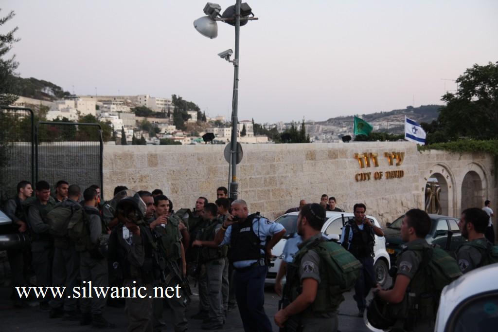 تجمع للشرطة وقوات الجيش الإسرائيلي أمام الموقع السياحي "مدينة داود" في مدخل حي وادي حلوة بسلوان- بعد حادثة إطلاق النار على أحمد القراعين-أرشيف