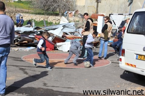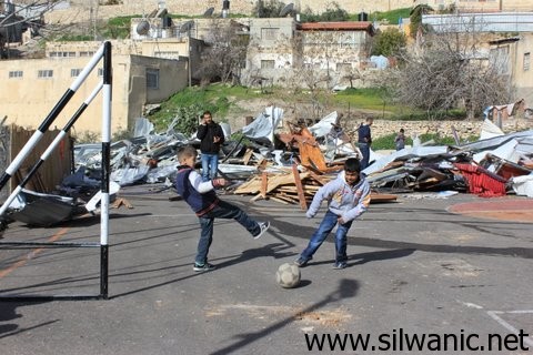 رغم ما قامت به آلة الهدم الاسرائيلية يوم امس من هدم وجرف للملعب الوحيد لاطفال وادي حلوه الا ان ذلك لم يهبط من عزيمتهم واصرارهم على حقعم باللعب هذا الحق المقدس لهؤلاء الاطفال الابرياء الذي تحاول السلطات الاسرائيلية سلبهم اياه هذه السلطات التي تكرس الجهد والاموال التي تدفع من ضرائب المقدسيين لترسخ لخدمة المستوطنين .