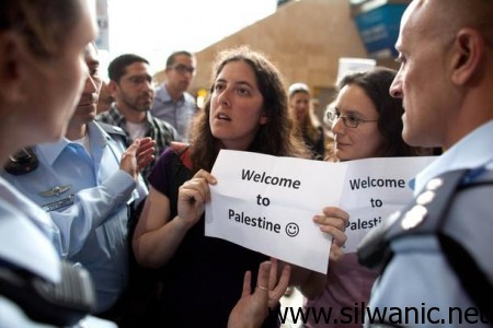 اعتقلت القوات الإسرائيلية هذا اليوم 18 متضامناً إسرائيلياً في مطار اللد بتهمة رفعهم شعارات ترحب بالقادمين في فلسطين وقد رفع المتضامنين شعارات "اهلاً وسهلاً في فلسطين" وقد قالت احد المتضامنات التي تم الافراج عنها قبل قليل الما بلبش " هددوني ان قلت كلمة فلسطين مرةً أخرى فسوف يتم توقيفي"