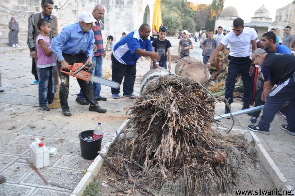 وأصدرت مؤسسة الأقصى للوقف والتراث بيانا أرجحت فيها أن تكون الحفريات الإسرائيلية أسفل الأقصى هي السبب وراء سقوط الأشجار في المنطقة، واشارت "مؤسسة الاقصى" انه تم رصد حالات تساقط لعدة اشجار في المسجد الاقصى او تيبس في فروعها او جذورها ، خاصة في الخط الممتد من مسطبة أبو بكر الصديق وحتى منطقة باب المجلس، أي الخط الغربي للمسجد الاقصى، ومعلوم ان هناك حفريات احتلالية اسرائيلية اسفل طول الجدار الغربي للمسجد الاقصى.