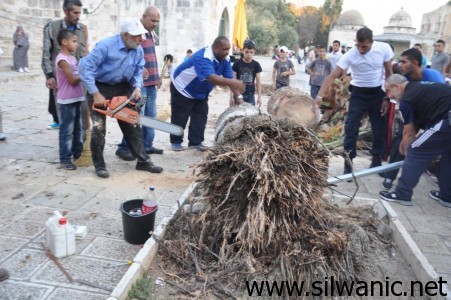من جهة اخرى فقد رُصدت اكثر من مرة حالات يقوم بها مسيتوطنون برش مواد مجهولة على اغضان او جذور اشجار المسجد الاقصى، وتم اخراج هؤلاء المستوطنين فورا خارج المسجد الاقصى، وكما هو معلوم فان الاحتلال الاسرائيلي ينصب اكثر من كاميرا مراقبة وتصوير على سطوح الجدار الغربي للمسجد الاقصى ، وهذه الاشجار قد تشكل معيقا لتصوير هذه الكاميرات.