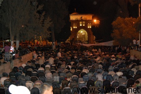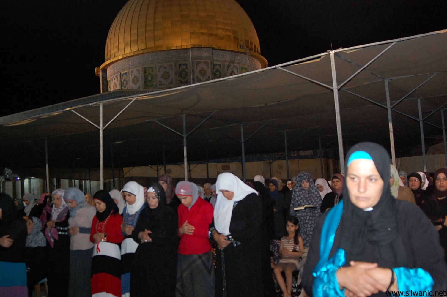 أحيا عشرات الآف من المصلين ليلة القدر في المسجد الأقصى المبارك الذي زحفوا اليه من كافة الأراضي الفلسطينية-باستثناء قطاع غزة المحاصر- ومن المدن العربية والإسلامية.