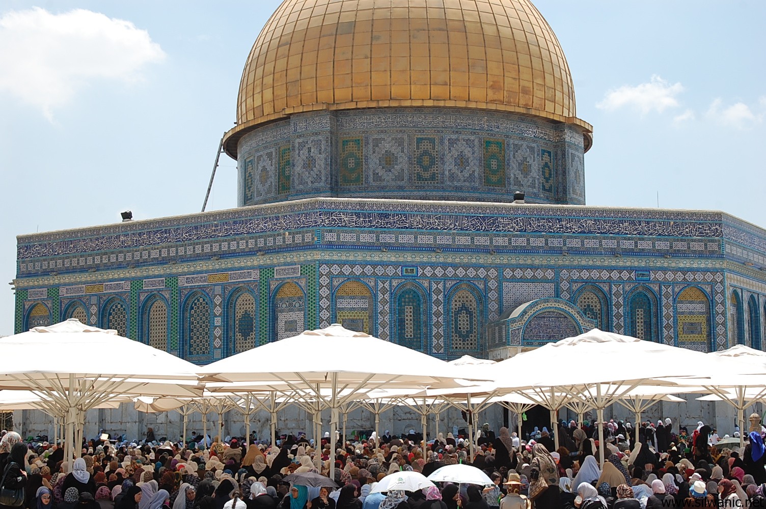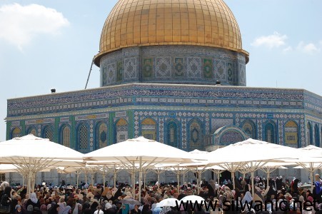 وامتلأت ساحات المسجد الأقصى بالمصلين الذين انتشروا بالمناطق المشجرة وأسفل الشوادر والمظلات.