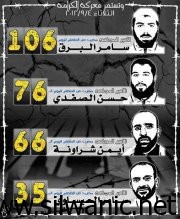 والاسرى هم: سامر البرق من قلقيلية، مضرب عن الطعام منذ 114 يوماً ، بسبب اعتقاله الإداري منذ أكثر من عامين، وحسن الصفدي من نابلس يواصل اضرابه لليوم 84، وأيمن شراونة من الخليل لليوم 74، بسبب اعتقاله بعد الإفراج عنه في صفقة التبادل الأخيرة، ومطالبة السلطات الإسرائيلية بإعادة حكمه السابق، كما هو الحال مع الأسير سامر العيساوي من القدس المضرب عن الطعام منذ 43.