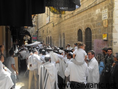 وسَار المستوطنون في شارع الواد، وأدوا طقوسهم الدينية عند باب الحديد لإدعائهم انه"المبكى الصغير"، ثم انطلقوا باتجاه باب القطانين حيث وقفوا وشكلوا حلقات الرقص والغناء والطقوس الخاصة، وصولا الى حائط البراق، حاملين الأعلام الإسرائيلية.