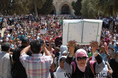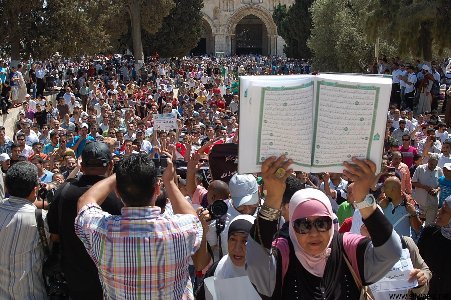 وحسب رصد مركز معلومات وادي حلوة للمسيرة فقد انطلقت من المسجد الأقصى المبارك باتجاه سطح قبة الصخرة حيث كان تجمع لعدد من النساء ثم خرجوا بمسيرة مشتركة من باب الناظر وهم يحملون الشعارات المناصرة للرسول محمد عليه السلام، والمصحف الشريف، وعلم يشير الى الدوس بالاحذية.