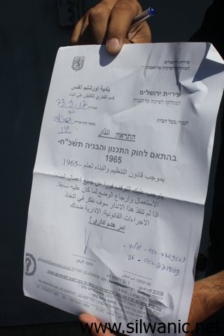 توزيع أوامر هدم ادارية في سلوان