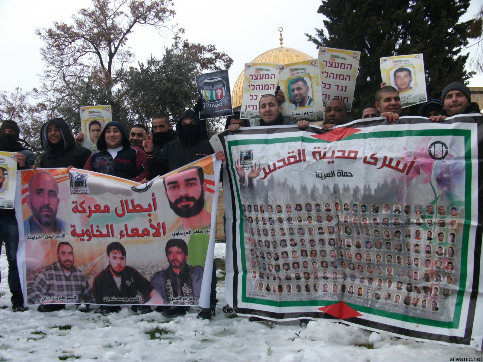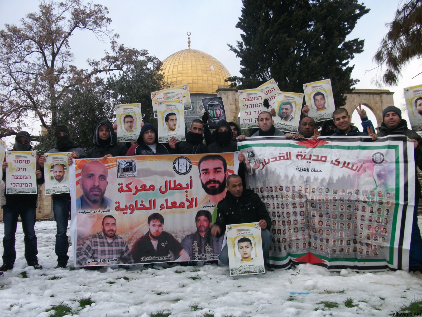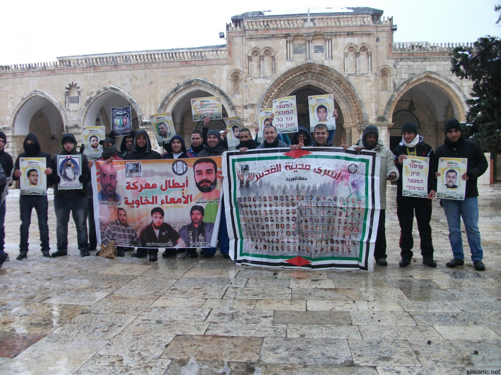 One of the participators said : "We are standing in the yards of the holly Aqsa mosque that symbolizes a big part of the Islam, during the cold to deliver a message to the world that we will not leave our prisoners alone. They are the symbol of our dignity, and despite the cold and the oppression we will stand by them. We"ll pray to god that he'll keep them warm until we meet them again in this holy mosque."