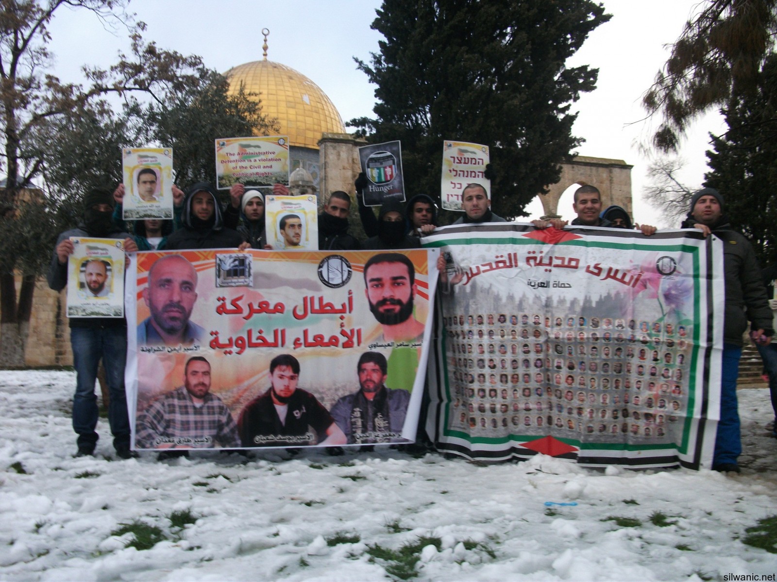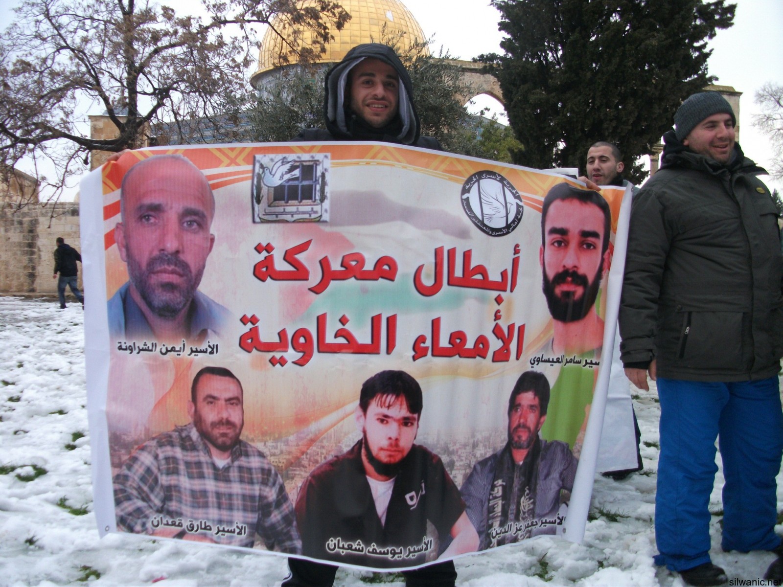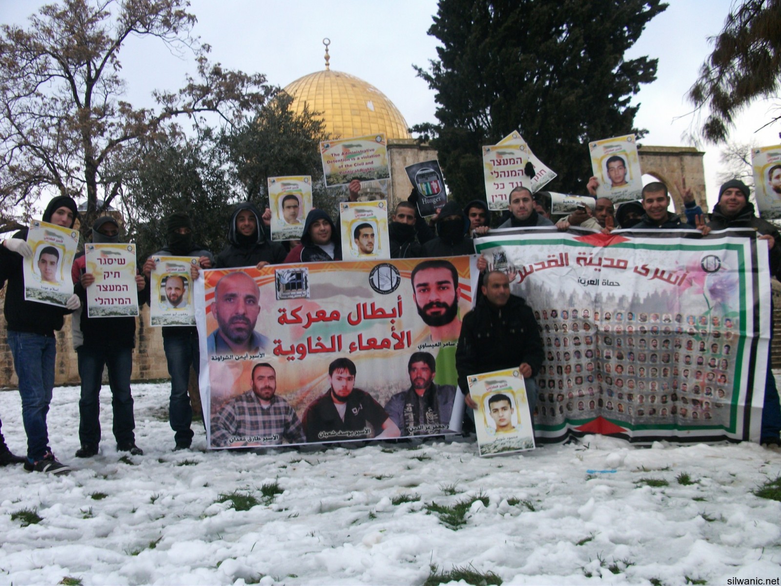 One of the participators said : "We are standing in the yards of the holly Aqsa mosque that symbolizes a big part of the Islam, during the cold to deliver a message to the world that we will not leave our prisoners alone. They are the symbol of our dignity, and despite the cold and the oppression we will stand by them. We"ll pray to god that he'll keep them warm until we meet them again in this holy mosque."