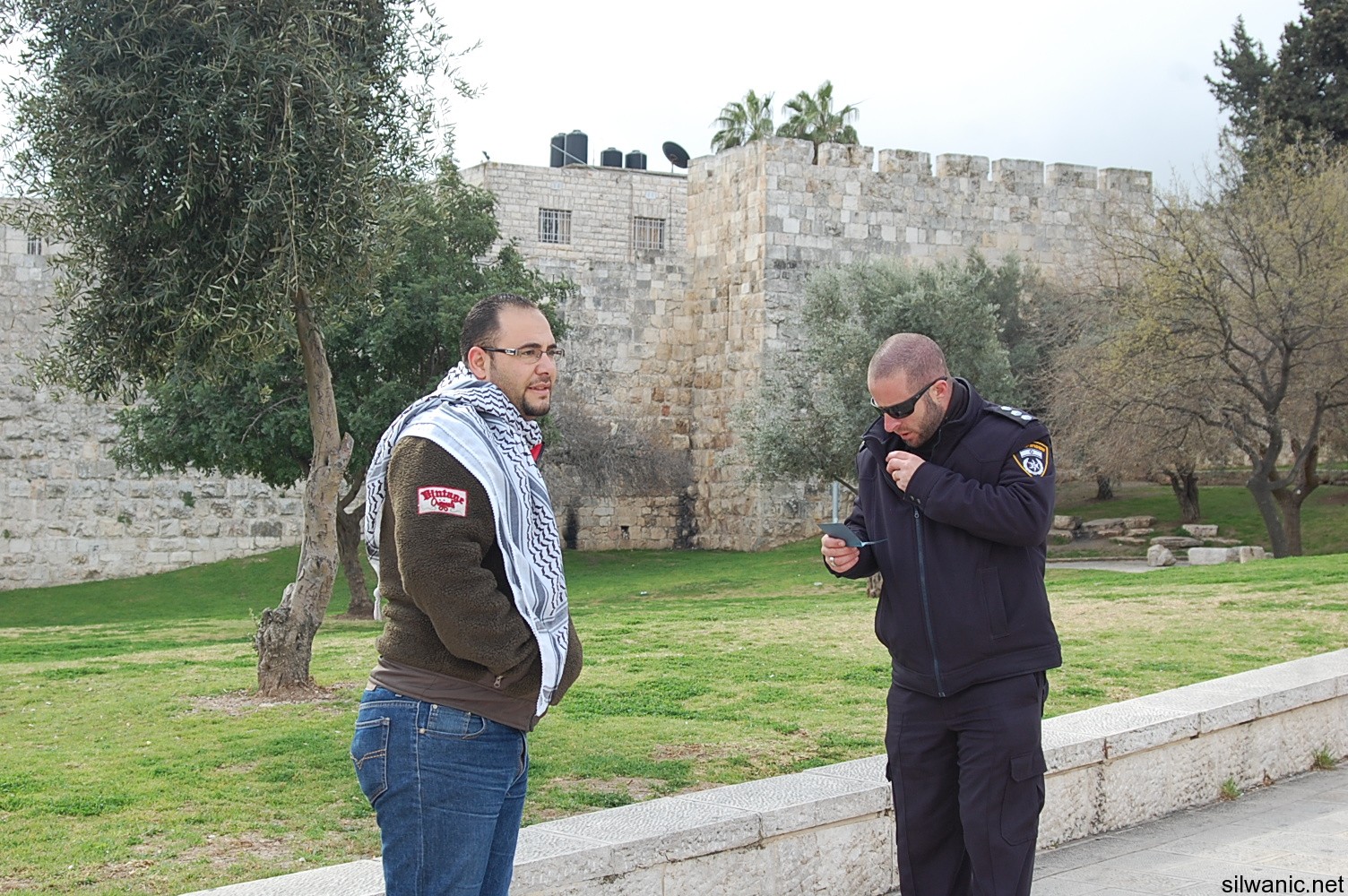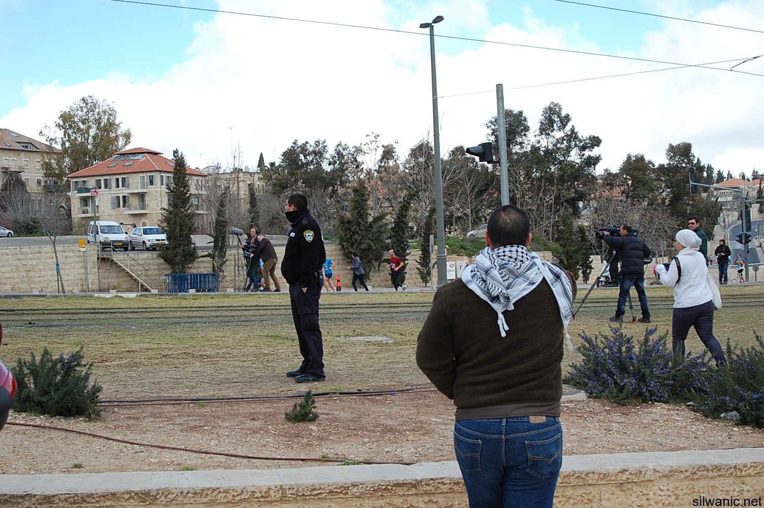 واعتقلت القوات الشاب هيثم الحلواني 27 عاماً، عند شارع رقم"1"، حيث وصل عند مفترق شارع رقم "1" لوحده واخذ بتريد شعار" القدس عربية فلسطينة" أمام المشاركين في الماراثون الاحتلالي، وقام الشرطي بتحرير هويته ثم اعتقاله، علما ان أحد المستوطنين وجه له كلمات نابية ضد العرب، الا ان الشرطة تحدثت اليه فقط.
