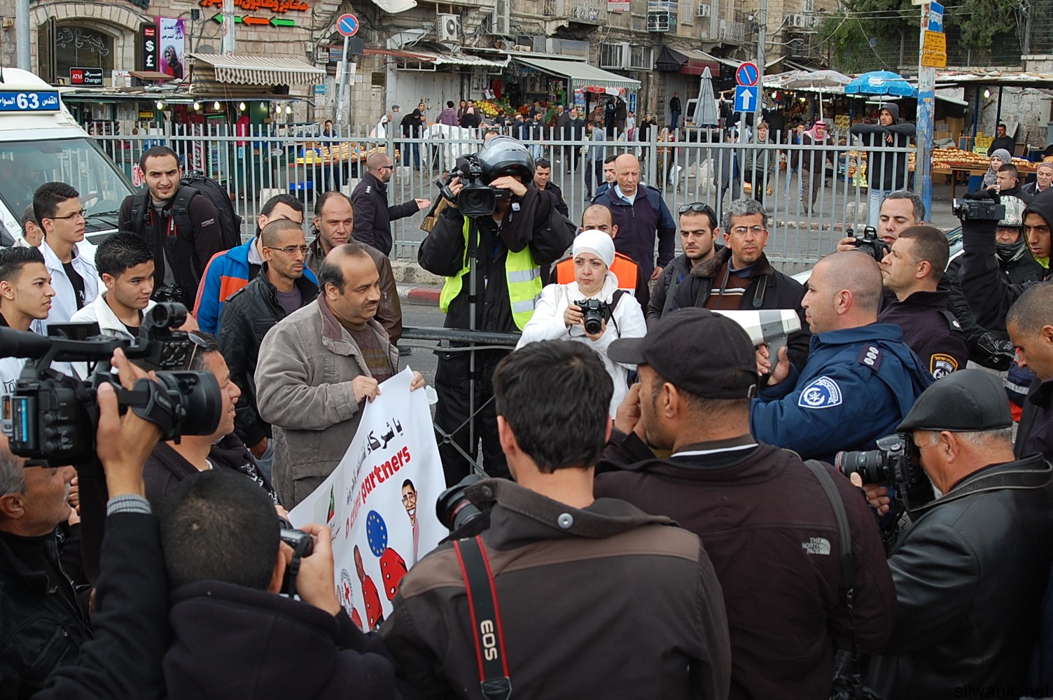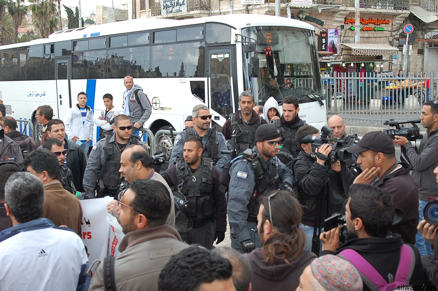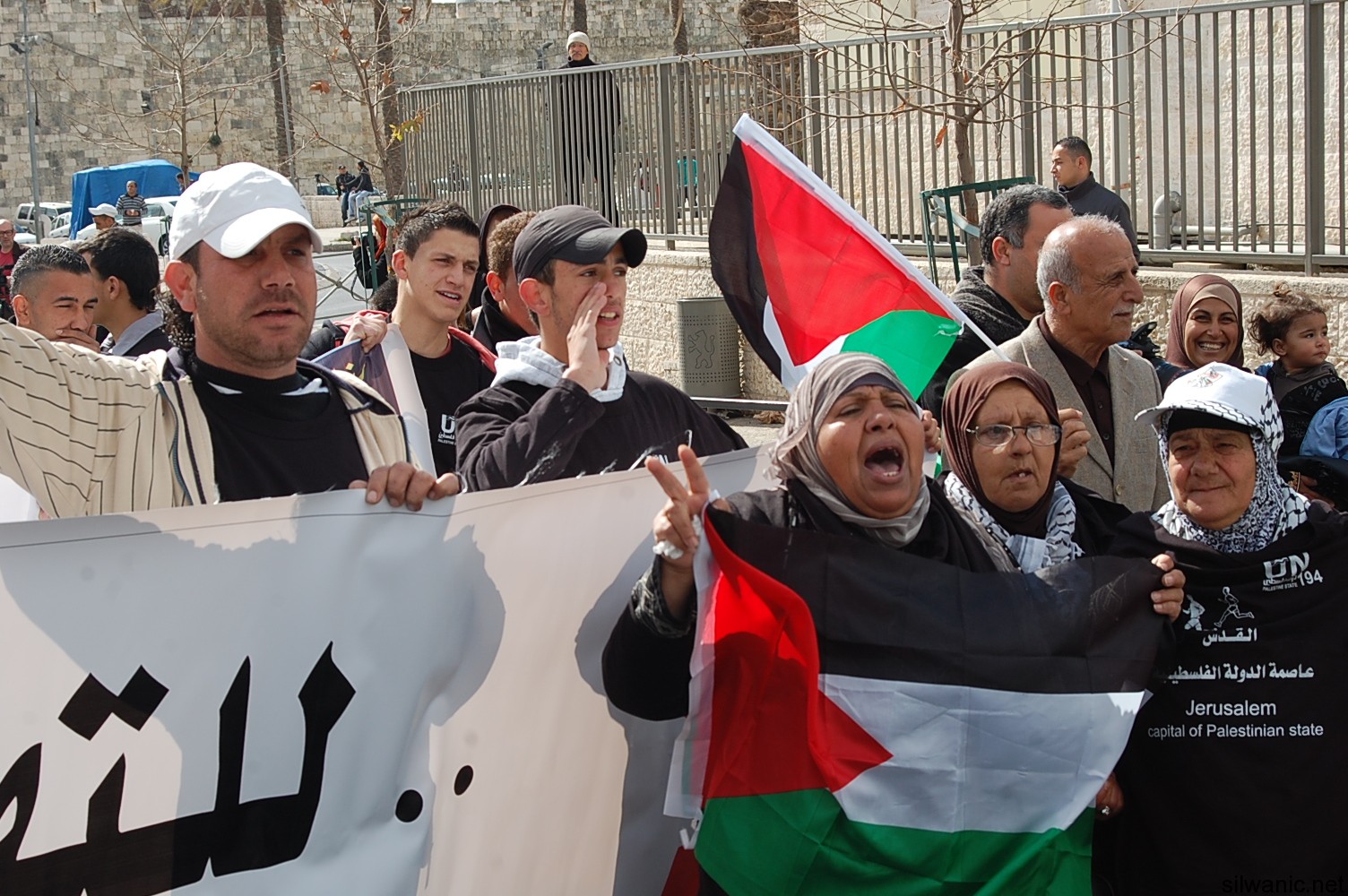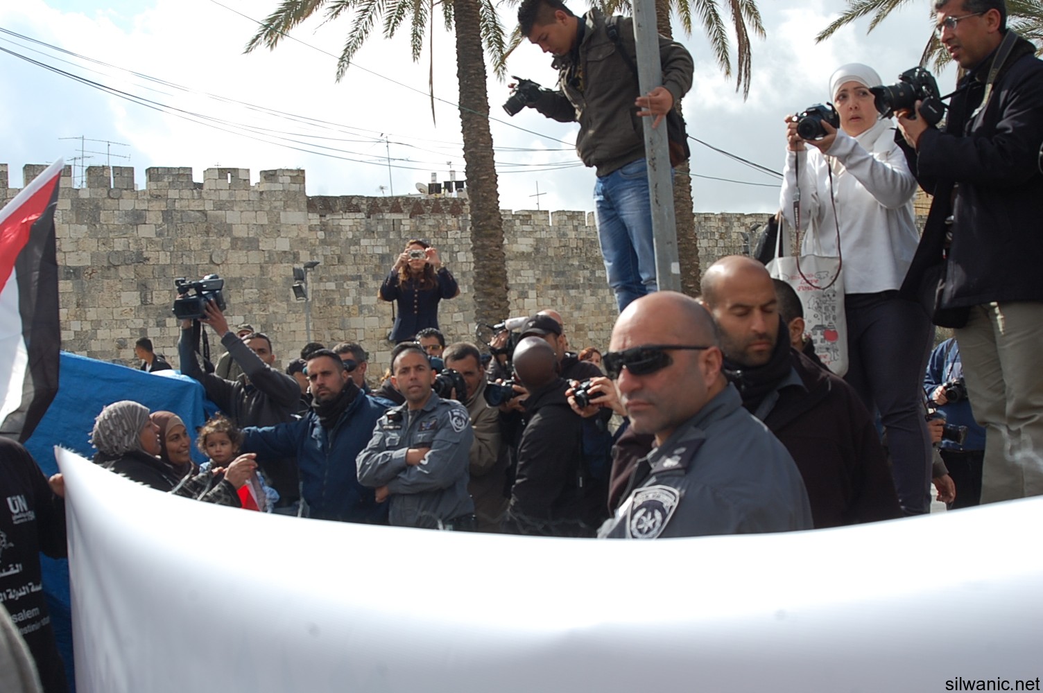 وقام المقدسيون برفع الأعلام الفلسطينية وتريد الشعارات المؤكدة بأن القدس عربية فلسطينية عاصمة للدولة الفلسطينية، كما تميزت شعاراتهم بالوحدة الوطنية، ومناصرة للأسرى، ولدى محاولتهم السير باتجاه شارع السلطان سليمان، شكلت القوات الاسرائيلية سلسلة وامهلهم أحد الضابط 30 ثانية لاخلاء المنطقة، مهددهم باستخدام.