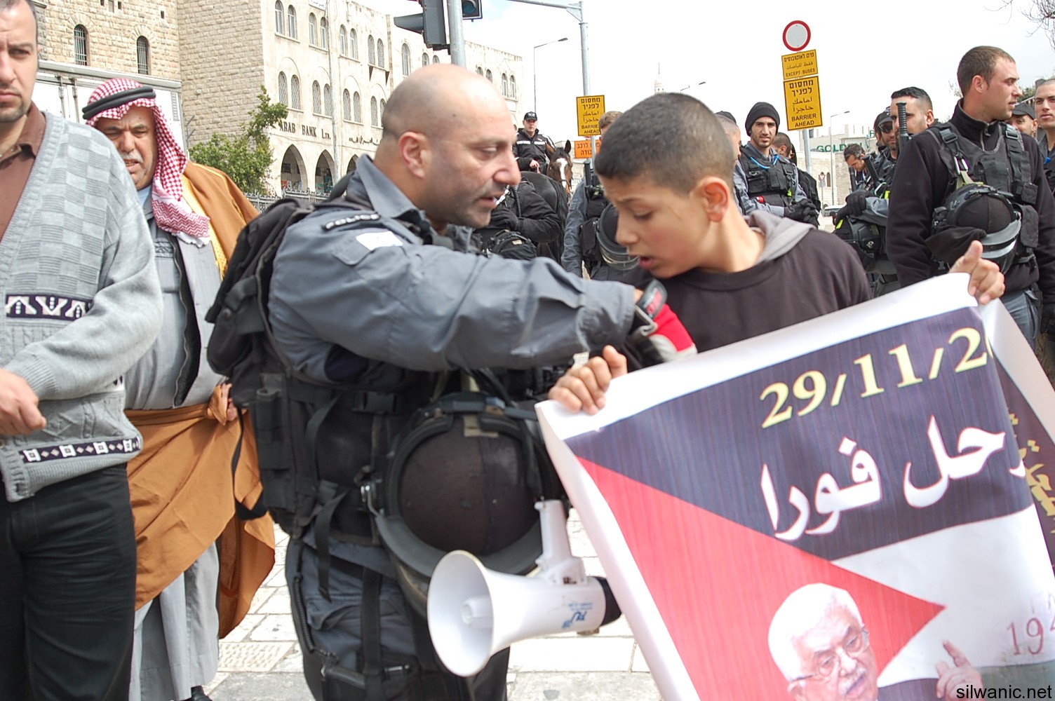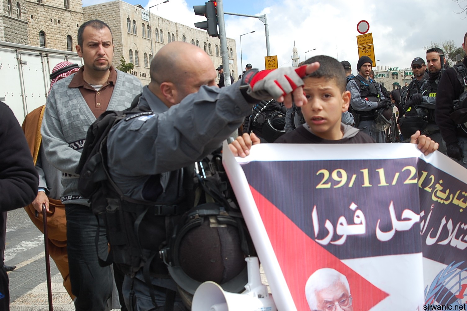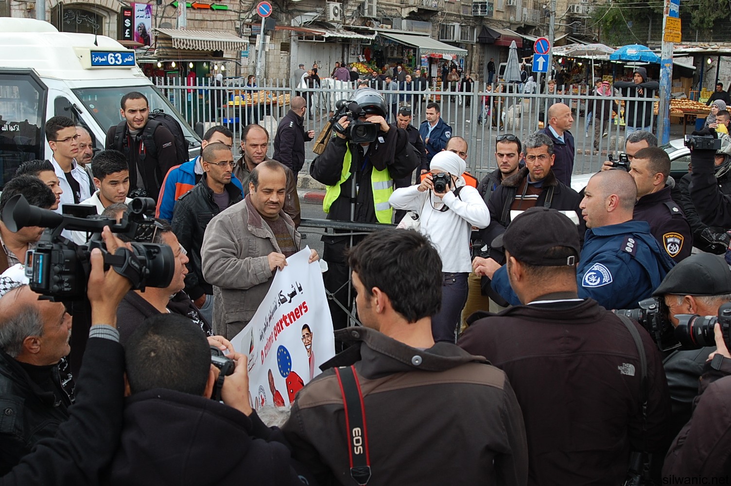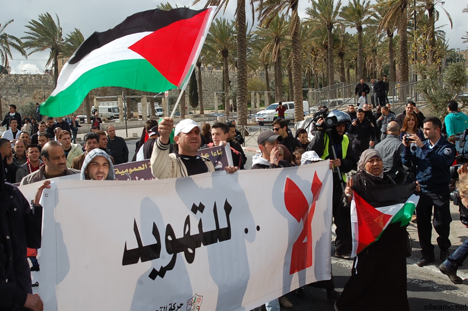وقام المقدسيون برفع الأعلام الفلسطينية وتريد الشعارات المؤكدة بأن القدس عربية فلسطينية عاصمة للدولة الفلسطينية، كما تميزت شعاراتهم بالوحدة الوطنية، ومناصرة للأسرى، ولدى محاولتهم السير باتجاه شارع السلطان سليمان، شكلت القوات الاسرائيلية سلسلة وامهلهم أحد الضابط 30 ثانية لاخلاء المنطقة، مهددهم باستخدام.