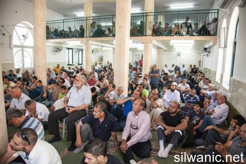 Dozens of Jerusalemites and Palestinians inside the green line participated in the Friday prayer in Al-Fateh Mosque located in Ras Al Amoud - Silwan. The prayer was organized in the mosque to express the refusal of the Jerusalem’s Municipality’s decision to demolish part of the mosque which is the women’s chapel, under the pretext of building without a permit. The area to be demolished is 70 square meters which was built 4 years ago on a land owned by Al-Awqaf. Sheikh Raed Salah, head of the Islamic party inside the green line, condemned the Israeli decision pointing out that the land on the east side of the mosque used to be an Islamic cemetery and is now occupied by Israelis. Sheikh Raed praised all who defended Al-Aqsa Mosque insisting on the importance of protecting it.