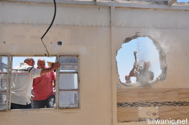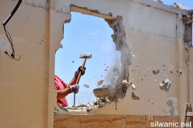 The Jerusalemite, Munther Hijazi, was forced on Saturday afternoon to self-demolish his home that is located in Al-Sa’dyeh neighbourhood in the old city of Jerusalem, after 12 years of building it. The municipality’s court ordered him to completely demolish his home and provide them with pictures to prove it in the next session scheduled on the 17th of September. Abu Mohammad 57, his family and the neighbours all participated in the demolition process using a big hammer. Munther built the 55-square meter house in 2000 which is on the third floor and consists of two rooms and a living room and their facilities; Abu Mohammad, his wife, his daughter in law and three other sons where the oldest is 9 years old and the youngest is two all lived in the apartment. Abu Mohammad explained that in 2001, a 36 thousand NIS building violation fee was imposed on him by the occupation’s municipality which he paid in full. He said that he got surprised in November of 2012 when he received a letter from the municipality stating that the apartment should be demolished. He hired a lawyer and the first session was conducted on 12/02/2013, and the case was postponed until the 27th of May when the court asked him to either pay outrageous amounts of money or have the municipality’s employees demolish his home or self-demolish it. Abu Mohammad said: “the Jerusalem municipality asked me to take pictures of the demolition process and submit them to the municipality’s court in the next session scheduled on 17/09/2013.” He also said that he will remain in the old city of Jerusalem because he can’t live outside of it since he was born and raised there.