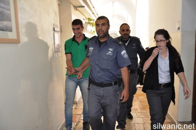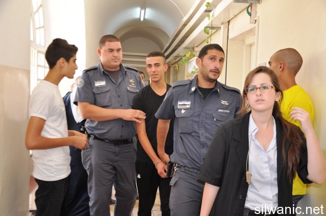 The Israeli District court sentenced today Ayman Naser Da’ajneh 18 from Shu’fat refugee camp for 30 months and a suspended sentence of 3 years. He was arrested along with eight other men from the refugee camp on 25/10/2012 on charges of burning a monitoring room that belongs to the soldiers at the military checkpoint in Shu’fat refugee camp. Ayman is currently prisoned in “Nafha” prison, while his older brother Mahmoud 20 is in “Jalbou” prison; note that he had spent 8 months of his 3-year sentence and is arrested with his grandfather Mahmoud Nofal, Dean of Jerusalem’s prisoners, and who had spent 21 years in prison as he is serving a life sentence. The Magistrate court extended the arrest of 3 young men from Al-Sowaneh in Al-Tur until next Thursday to submit an indictment against them in the District court. They are: Eyad Shalabi 22, Amir Qadamani 18, Ahmad Al-Alami 22 and they are accused of assaulting a settler. Shalabi and Qadamani were arrested two weeks ago and their arrest was extended last Thursday until Monday, while Ahmad Al-Alami was arrested on the 27th of June 2013, and his arrest was extended until Monday.
