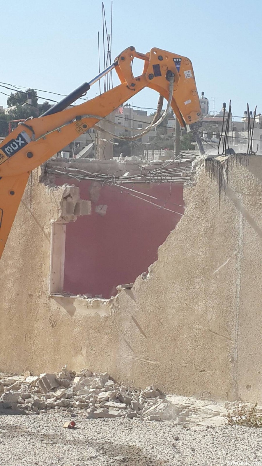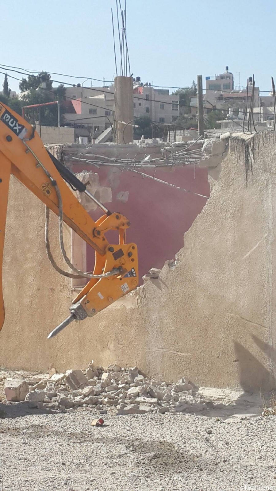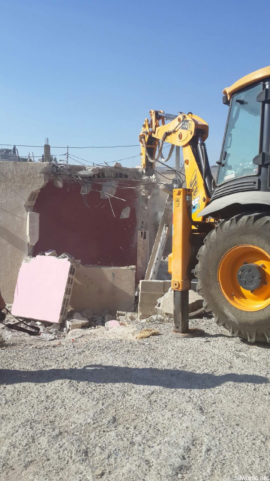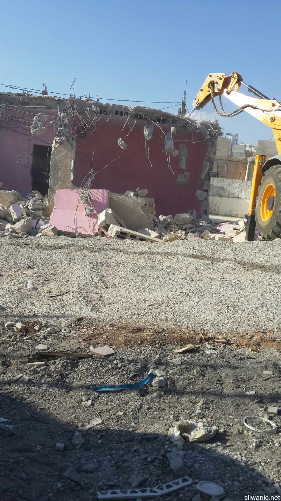 Citizen Ziad Amira was forced to self-demolish his house which is located in the village of Sur-Baher as ordered by the municipality because of building without a permit. Ziad explained to Wadi Hilweh Information Center that the house is 100 square meters and has 3 bedrooms, a living room and its facilities and 9 people live in the house (Ziad’s mother 85, Ziad and his wife, their children where the oldest is 24 years old and the youngest is 15). Amira noted that he had built the house 15 years ago and was able to move in two years after it was built where he had to borrow money and sell his wife’s gold to finish building the house. The first demolition order was issued 20 days after he moved in the house and Amira was able to postpone the demolition for the past years and paid large amounts of money to the lawyers in addition to paying more than 75 thousand NIS of building violation fees. Amira added that the municipality’s court issued an order last May to self-demolish the house under the pretext of building without a permit, and threatened to have its bulldozers demolish the house on Amira’s expense for a total of 73 thousand NIS, and said: “I rented a bulldozer and self-demolished my house and an outside balcony which is 70 square meters,” noting that demolishing his house cost him 25 thousand NIS.