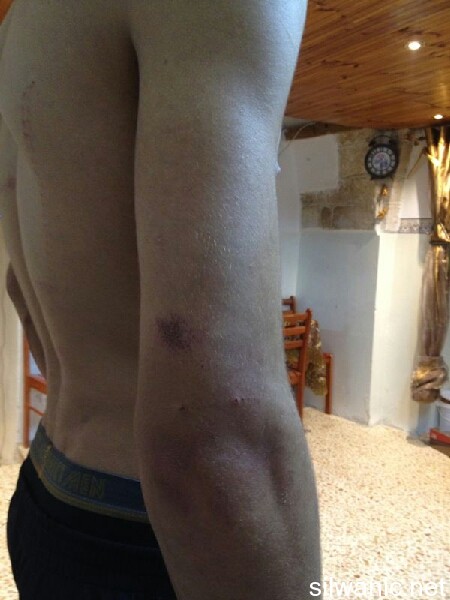 Sub Laban family members were injured with bruises and wounds after being attacked by dozens of settlers while being near their home in Al-Qirmi neighborhood in the old city of Jerusalem. Amal Sub Laban (Um Louai) explained to Wadi Hilweh Information Center what happened with the family saying: “while I was on my way home in Al-Qirmi neighborhood along with some family members, one settler who follows my son Adam on a daily basis was staring at us and suddenly he disappeared. We kept on walking, and while I was helping my husband walk since he is paralyzed as a result of a stroke and we were only a few meters away from our home, I heard my son Adam screaming. I rushed to him only to find 20-30 settlers attacking him and then they attacked me using sticks and iron chains as well as randomly spraying us with gas. My son Louai heard us scream and upon his arrival, the settlers surrounded him and attacked him as well.” She added: “I tried to scream and get them to move away from my sons Louai and Oday, but I did not succeed especially that they sprayed me with a good amount of gas on my eyes and from a close distance; they also attacked me and my paralyzed husband using their belts on our bodies.” She explained that she tried to appeal for a group of Jews and the synagogue security next to her house to call the police, noting that the police arrived and moved the settlers away. Ambulances arrived at the scene as well and all family members were transferred to Hadassah Ein Kerem and Shaare Zedek hospitals for treatment as they were all injured with bruises, wounds and burns; Oday had 4 stitches in his head. She also explained that a group of settlers attacked Oday the next morning and the police detained him for a few hours at Al-Maskobyeh and was then released on condition of house arrest for 5 days. Um Louai mentioned that she suffers on a daily basis from settlers attacks on the people that live by her house in the synagogue.