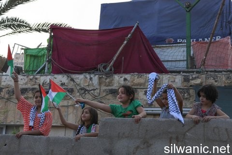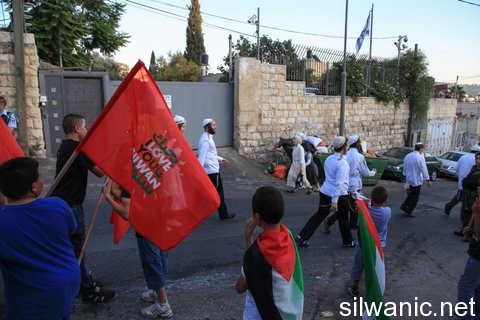وأضاف الطاقم ان قوة كبيرة من الشرطة وحرس الحدود قاموا باقتحام البلدة، وتمركزوا وسط حي وادي حلوة، وصادروا الاعلام من الأطفال، وهددوا باعتقالهم، كما انتشروا في أزقة الحي وأحواشه.