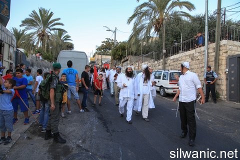 وادي حلوة أن اعداد من المستوطنين قصدوا سلوان في ساعات العصر باتجاه "عين سلوان" لاداء طقوسهم الدينية الخاصة، في وقت رفع فيه عدد من الفتية والأطفال الأعلام الفلسطينية وأعلام "بحبك يا سلوان"، وحاول عدد من المستوطنين الاعتداء عليهم بالضرب ومصادرة الاعلام.