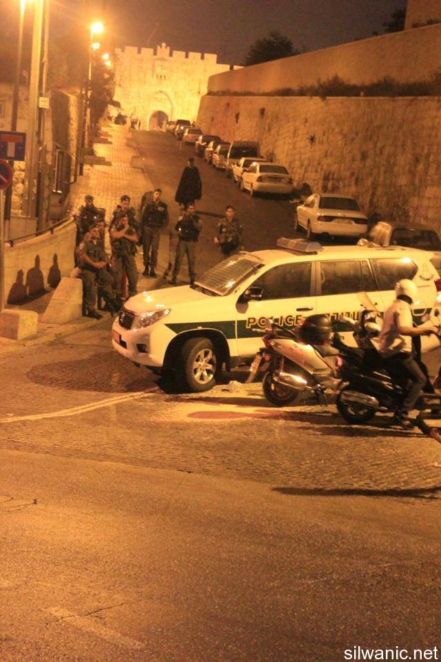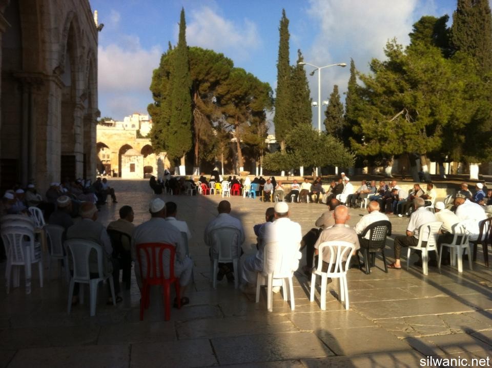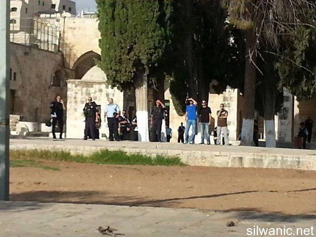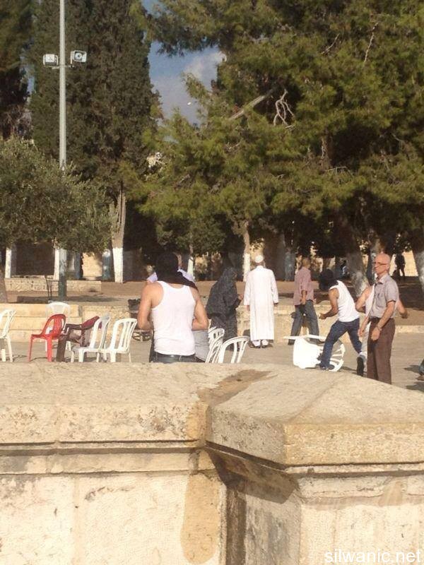 The Israeli Special Forces raided the courtyards of Al-Aqsa Mosque on Wednesday and surrounded the men and women who were staying at Al-Aqsa in Al-Qibali Mosque and the Dome of the Rock. The forces also sprayed them with pepper gas resulting in the suffocation of many citizens. The police announced the arrest of 5 citizens from the old city on charges of throwing stones at them. The Jerusalemite and 1948-lands Marabouts confronted a group of extremists on Wednesday morning who broke into Al-Aqsa Mosque through Dung gate on occasion of the so-called “Hebrew New Year”. Witnesses said that the occupation police let 8 settlers inside the courtyards of Al-Aqsa Mosque through Dung gate, and the Marabouts started chanting “God is Great” and threw stones towards the settlers which forced the police to immediately escort them outside without completing their tour. Larges Israeli forces were deployed at the gates of Al-Aqsa Mosque and established checkpoints since the early morning hours and prevented men under the age of 50 from entering; they also prevented women and students of Al-Aqsa Schools from entering Al-Aqsa to attend their schools. The students of Al-Aqsa Schools protested at Lions gate against preventing them from getting to their schools. The police also surrounded Al-Qibali Mosque and closed its gates with iron chains and sprayed the Marabouts with pepper spray. Clashes renewed later on in the day in the courtyards of Al-Aqsa Mosque and the Special Forces continued to surround the worshippers inside Al-Qibali Mosque and kept on spraying them with pepper spray which led to the injury of three women. Gates of Al-Aqsa Mosque (Hutta, Lions, and Majles) witnessed clashes using hands between the young men and the Israeli forces, a result of the Israeli limitations on people entering Al-Aqsa. Wadi Hilweh Information Center was informed that 70 citizens suffocated in which 15 were severely injured and the police refused to let the ambulance crews get to the courtyards of Al-Aqsa Mosque to treat the injured.