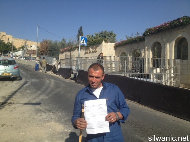 وزعت طواقم بلدية الاحتلال اليوم الأحد منشورات على عدد من أهالي حي وادي حلوة ، تمهيدا للشروع بتنفيذ مشروع "مجمع كدام – عير دافيد- حوض البلدة القديمة"، في ساحة باب المغاربة بمدخل بلدة سلوان، جنوب المسجد الأقصى المبارك.