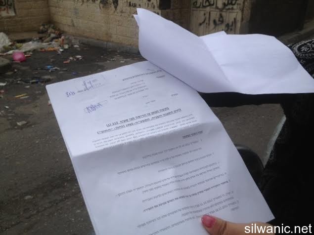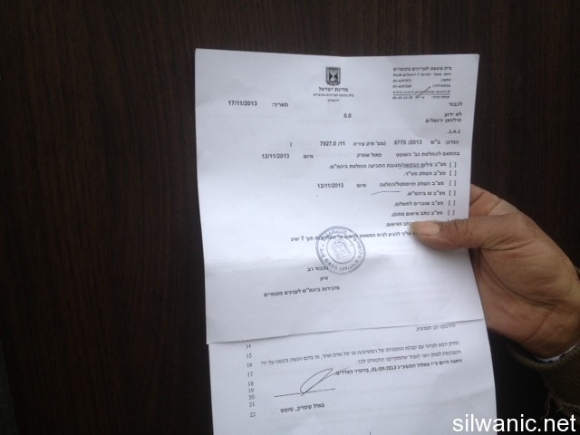 وعلم مركز معلومات وادي حلوة أن حملة البلدية شملت حي بئر أيوب وعين اللوزة، حيث وزعت الأوامر لجامع "القعقاع" ولمنازل سكنية وأخرى قيد الانشاء، ومواقف للسيارات.