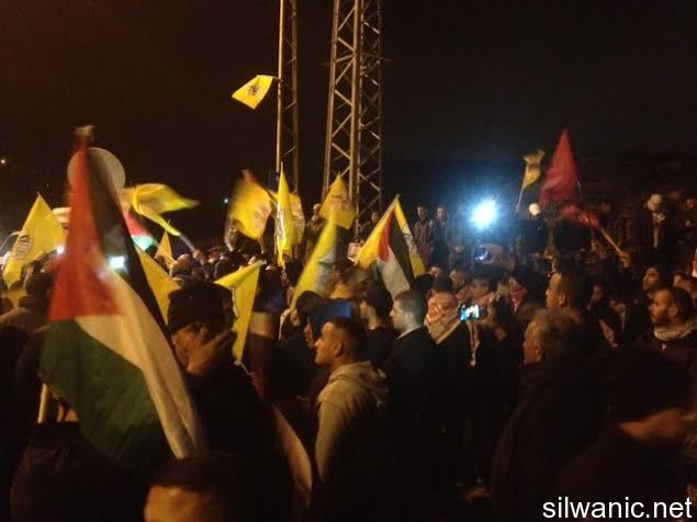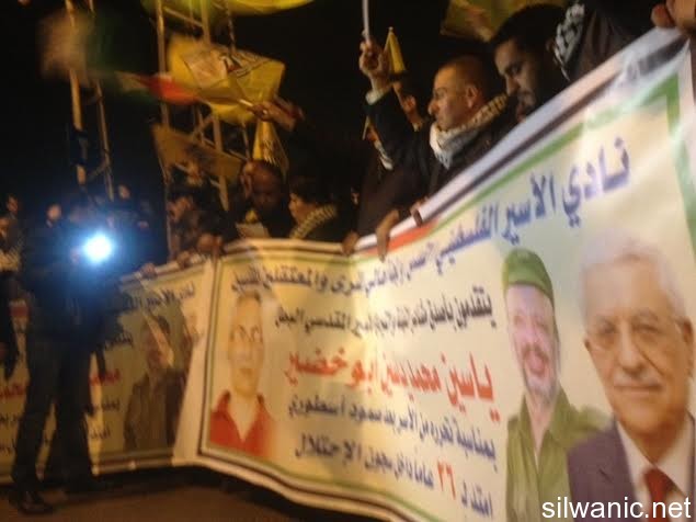The Jerusalemites were ready to welcome their sons who were released last Tuesday during the third part of the deal. Dozens of Jerusalemites headed towards Al-Zaytoona checkpoint east of Jerusalem to welcome the freed prisoners. The prisoners are: Mahmoud Nofal Da’ajneh who was arrested for 21 years, Bilal Abu Hussein who was arrested for 25 years, Ahmad Khalaf who was arrested for 21 years, Jamal Abu Jamal who was arrested for 20 years and Yassin Abu Khdeir who was arrested for 27 years. The Israeli intelligence informed the families of the prisoners to only have two family members at Al-Zaytoona checkpoint at 10 p.m. The Jerusalemites raised the pictures of the prisoners in general and posters of released prisoner in particular in addition to raising Palestinian flags. In a related matter, dozens of extremist settlers protested against the release of the Jerusalemite prisoners. The march initiated from in front of the house of Netanyahu in West Jerusalem through Jaffa Gate and the Armenian Quarter onto Al-Silsileh Gate where the freed prisoner Ahmad Khaled lives. The extremists chanted slogans against Palestinians and described them as “terrorists”. The protesters held black umbrellas as a sign of mourning and signs that had the words “revenge and death for terrorists” written on them; they stood 100 meters away from the house and the police prevented them from breaking into the house. At 1:30 a.m. the Israeli intelligence asked the families of the prisoners to head to the military camp built on the lands of Esawyeh to receive their children. At 1:45 a.m. the Israeli forces blocked all the roads leading to the military camp in order to prevent the locals from celebrating the freedom of the prisoners and the media from covering the event. The releasing process started around 2:10 a.m. and at 2:15 the Israeli forces started firing sound bombs and rubber bullets towards the citizens and their cars in order to disperse them and prevent them from celebrating the liberation of their sons from the Israeli prisons.