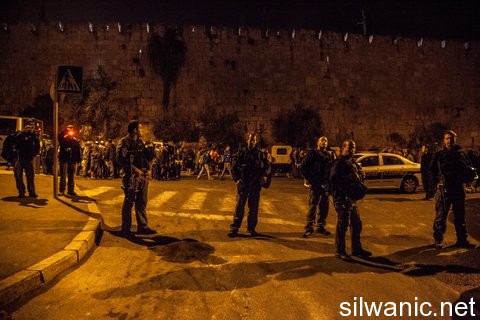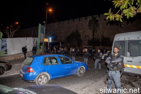 Dozens of settlers participated in their monthly march on Thursday in the streets of the Old City of Jerusalem down to the Wailing Wall. The occupation forces closed the streets and roads in the Old City as well as closing the neighbourhood of Wadi Hilweh and prevented the residents from leaving the neighbourhood in order to protect the settlers in their march to the Wailing Wall. During the closure, verbal altercation broke out between the residents and the police which checked the IDs of several residents and threatened to arrest them.