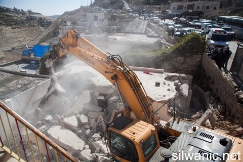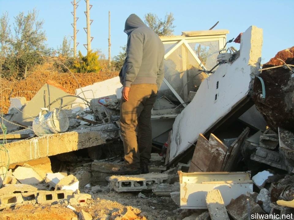 The occupation municipality’s bulldozers carried out a series of demolitions for residential houses in Sur Baher, Jabal Al-Mukabber and Beit Hanina in the city of Jerusalem. Sur Baher and the displacement of 4 individuals Wadi Hilweh Information Center was informed that the demolished house in Sur Baher- Um Lysoon is owned by Mujahed Abu Sarhan where four individuals lived. Mujahed said that the Israeli forces raided his home around 05:30 a.m. after breaking the glass and damaging the front door. Then they assaulted him and forced him along with his family to evacuate the house and started with the demolition process after taking the furniture out. Abu Sarhan said: “the forces assaulted me and damaged out furniture and then demolished the house which is 35 square meters and is built from aluminium and tin plates.” He pointed out that the house has been built since 2008 and he is paying a 13-thousand NIS building violation fee. Abu Sarhan stressed that the demolition process was carried out without prior notice as he has been trying to obtain a building permit. Beit Hanina and the displacement of 7 individuals The forces demolished a house in Beit Hanina- Wad Al-Dam that is owned by Mohammad Sandouka and led to the displacement of 7 Jerusalemites. Ala’ Sandouka said that the forces raided the house around 05:30 a.m. and forces the family to evacuate the house despite the cold weather and then emptied the house and continued with the demolition process. Sandouka explained that the house was built 17 years ago and the family has paid a building violation fee of 10 thousand NIS on the 65-square meter house. Jabal Al-Mukabber…postponing the demolition The occupation bulldozers were ready to demolish two houses for Hussein Ramadan Shkeirat and his brother Naser in Jabal Al-Mukabber. The municipality crews emptied both houses and assaulted the residents (men and women) and severely beat them and also sprayed them with pepper gas; they also detained five young men. The houses were built 17 years ago and the family has been trying to obtain a permit throughout all those year but to no avail; note that 14 individuals live in both houses. After two hours of surrounding the houses, the family was able to get an order from the court to stop the demolition for 7 days after paying a 60-thousand NIS fine. Clashes broke out between the residents and occupation forces which detained 5 young men and released them after detaining them for several hours. Among them were: Ramadan and Odai Naser Shkeirat and Ramadan Shteiwi Shkeirat. Al-Bashir neighbourhood…demolition and displacement of 8 individuals The municipality bulldozers demolished the house of Khaled Mahmoud Bashir in the neighbourhood of Al-Bashir in Jabal Al-Mukabber; note that the 85-square meters house was built 5 years ago and consists of 4 rooms and their facilities where 8 individuals live including a child that suffers from a physical disability. Bashir explained that the occupation municipality imposed a 50-thousdand NIS building violation fee 8 months ago and he is currently paying a 900 NIS monthly payment. Bashir noted that his lawyer submitted an appeal to the District court’s decision in order to stop the demolition but the municipality crews had already demolished when they received the order. During the demolition, clashed broke out between the locals and the Israeli forces that assaulted them and sprayed them with pepper gas; they also assaulted the owner’s nephew and arrested him for no reason. Al-Sal’a neighbourhood and the displacement of 3 individuals In a related matter, the occupation municipality forced Maher Mashahra on Wednesday to self-demolish his house in the neighbourhood of Al-Sal’a in Jabal Al-Mukabber. Maher said: “a large Israeli force along with a bulldozer raided my house and gave me 4 hours to evacuate and execute the demolition. They threatened me to demolish it on my own expense (45 thousand NIS) which forced me to rent a bulldozer and self-demolish my house. The forces surrounded my houses until the demolition process was completed and imposed a 10-thousand NIS on me for the cost of police individuals that surrounded the location.” Mashahra pointed out that he has been living in the house for 3 years with his wife and his 3-month daughter.