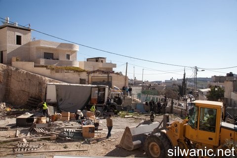The municipality’s bulldozers demolished a residential house in the neighbourhood of Jabal Al-Mukabber (Al-Jiser area) in the city of Jerusalem. According to the information available to Wadi Hilweh Information Center, the house is owned by Mohammad Hassan Nazeeleh “Ja’afra” and has been established for 18 years. Ja’afra said that the 120-square meters house which consists of 5 rooms and their facilities was built 18 years ago and is a home for 7 individuals. A 30-thousand NIS building violation fee was imposed on the house and the last court session was held two years ago and the family has been trying to obtain a building permit since; note that the forces came to demolish the house without prior notice. Ja’afra explained that the soldiers assaulted him and severely beat him while he was leaving his house and the house was demolished on top of a big part of their furniture. In a related matter, the municipality’s bulldozers demolished a trailer owned by Mohammad Hasan Jo’beh in Al-Tur; note that the forces completely surrounded the area and broke the door of the trailer without the presence of the owner and then emptied it and carried out the demolition. Ali Jo’beh, Mohammad’s brother said that they were surprised when a large force surrounded the area and then the municipality crews started emptying the trailer which was used as storage without their knowledge. When they arrived, they offered to empty the trailer by themselves and then self-demolish it but they refused; note that the municipality imposed a fee of 20-thousand NIS on the family in 2007 on another trailer which was then removed.