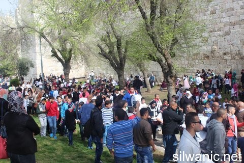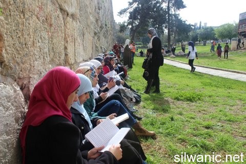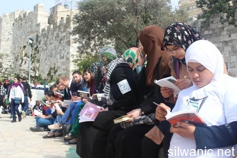 Nearly seven thousand book readers surrounded the walls of Jerusalem on Sunday in the activity of “longest book readers around the walls of Jerusalem” that was organized by the “Country’s Youth Initiative”. The Jerusalemite activist and director of “Country’s Youth Initiative”, Hussam Alyan, said that seven thousand book readers surrounded the walls of Jerusalem coinciding with the participation of 8 thousand other readers in the city of Bethlehem, Al-Ram and Al Isma'iliyah in Egypt and Amman where the total number of participants was nearly 15 thousands. He explained that the activity in Jerusalem initiated from Damascus Gate towards Jaffa Gate New Gate (West) and Herod’s Gate and Lions Gate (East). He added that most of the readers donated their books that they have read to build libraries in Jabal Al-Masharef, Silwan, Sheikh Jarrah and Al-Hakawati Theatre).
