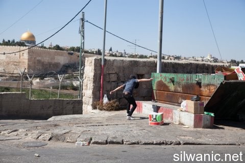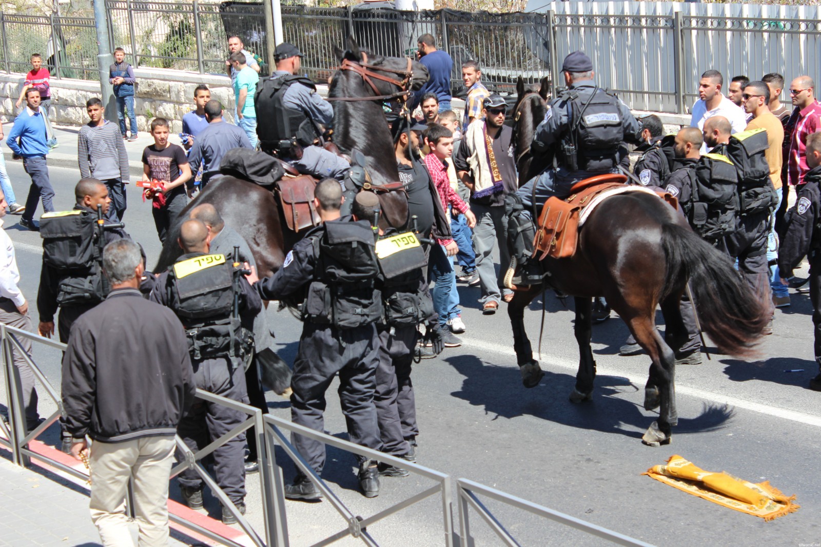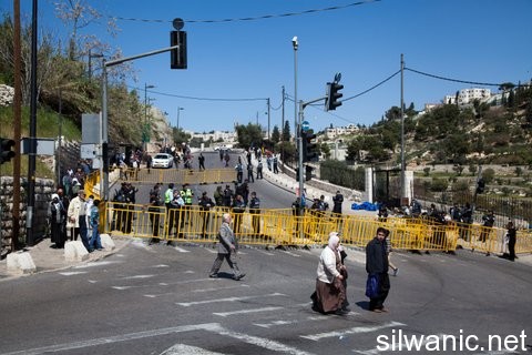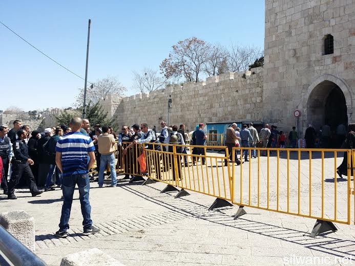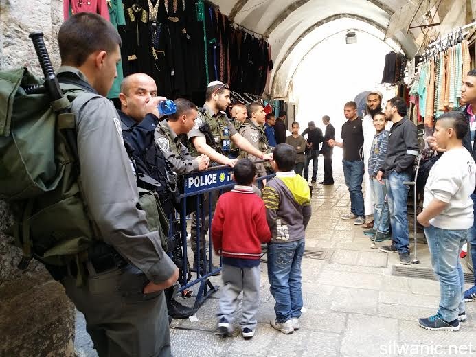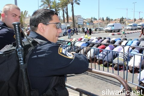The occupation authorities prevented thousands of Palestinian citizens under the age of 40 from performing the Noon Prayer at Al-Aqsa Mosque. The Israeli forces turned the city of Jerusalem into a “Military Barracks” since the early morning hours and hundreds of Special Forces individuals and borders police were deployed in the streets of the city and all the roads leading to Al-Aqsa Mosque; they also closed several intersections and roads using iron barriers and red tape. Hundreds of Palestinians performed the Noon Prayer in the streets (at the last point they could reach) and the soldiers tried to ban people from praying in Wad Al-Joz and near Lions Gate which resulted in minor clashes between the young men and Israeli forces but the young men insisted on praying. Prayers were carried out in Salah Eddin Street, Damascus Gate, Wad Al-Joz, Lions Gate and the closed gates of Al-Aqsa. The courtyards of Al-Aqsa Mosque looked empty of worshippers due to the restrictions imposed on people entering Al-Aqsa. After the Friday Prayer was over, limited clashes broke out in the neighbourhood of Ras Al-Amoud between the young men and Israeli soldiers who assaulted a Jerusalemite while he was inside his house.