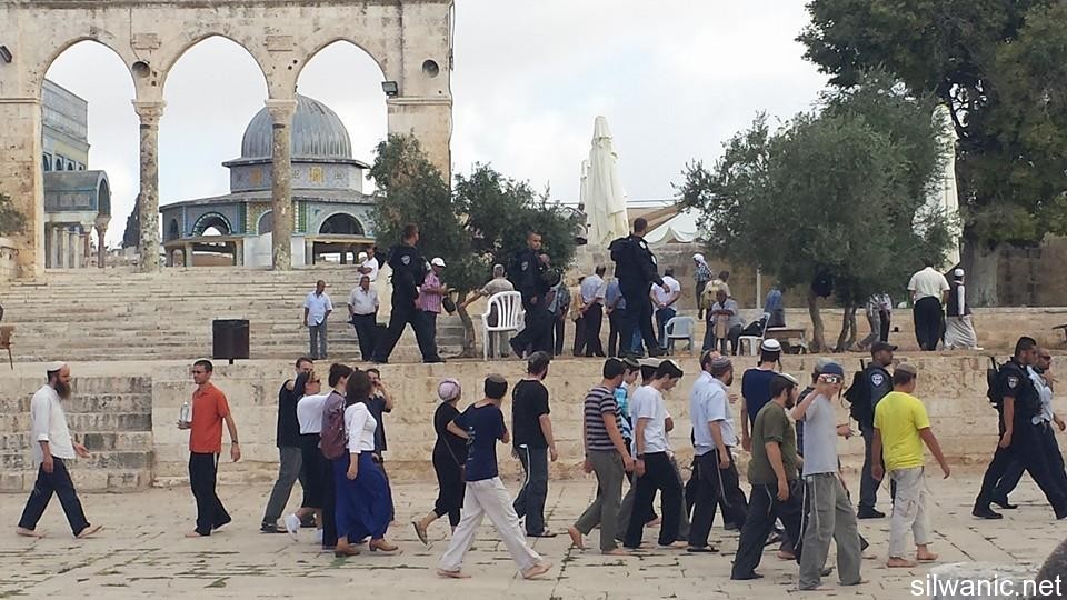 اقتحمت القوات الإسرائيلية ساحات المسجد الأقصى، عبر باب المغاربة، وألقت القنابل الصوتية والأعيرة المطاطية بصورة عشوائية في الساحات، لتأمين اقتحامات المستوطنين له في ما يسمى "ذكرى خراب الهيكل".
