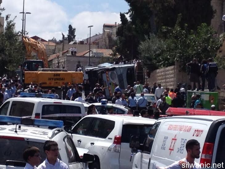 The 20-year old Mohammad Nayef Ja’abees who is a Jerusalemite bulldozer driver passed away on Monday afternoon after shooting him from a close distance after colliding with an “Egged” bus near the neighborhood of Sheikh Jarrah. Witnesses said that the young man was driving his bulldozer and collided with a bus and caused it to flip. The bus driver was injured with minor injuries and the Israeli forces opened fire towards the bulldozer driver and killed him. Israeli sources pointed out that six Israelis were injured in the incident which was considered a “terrorist attack” and one of the injured passed away.