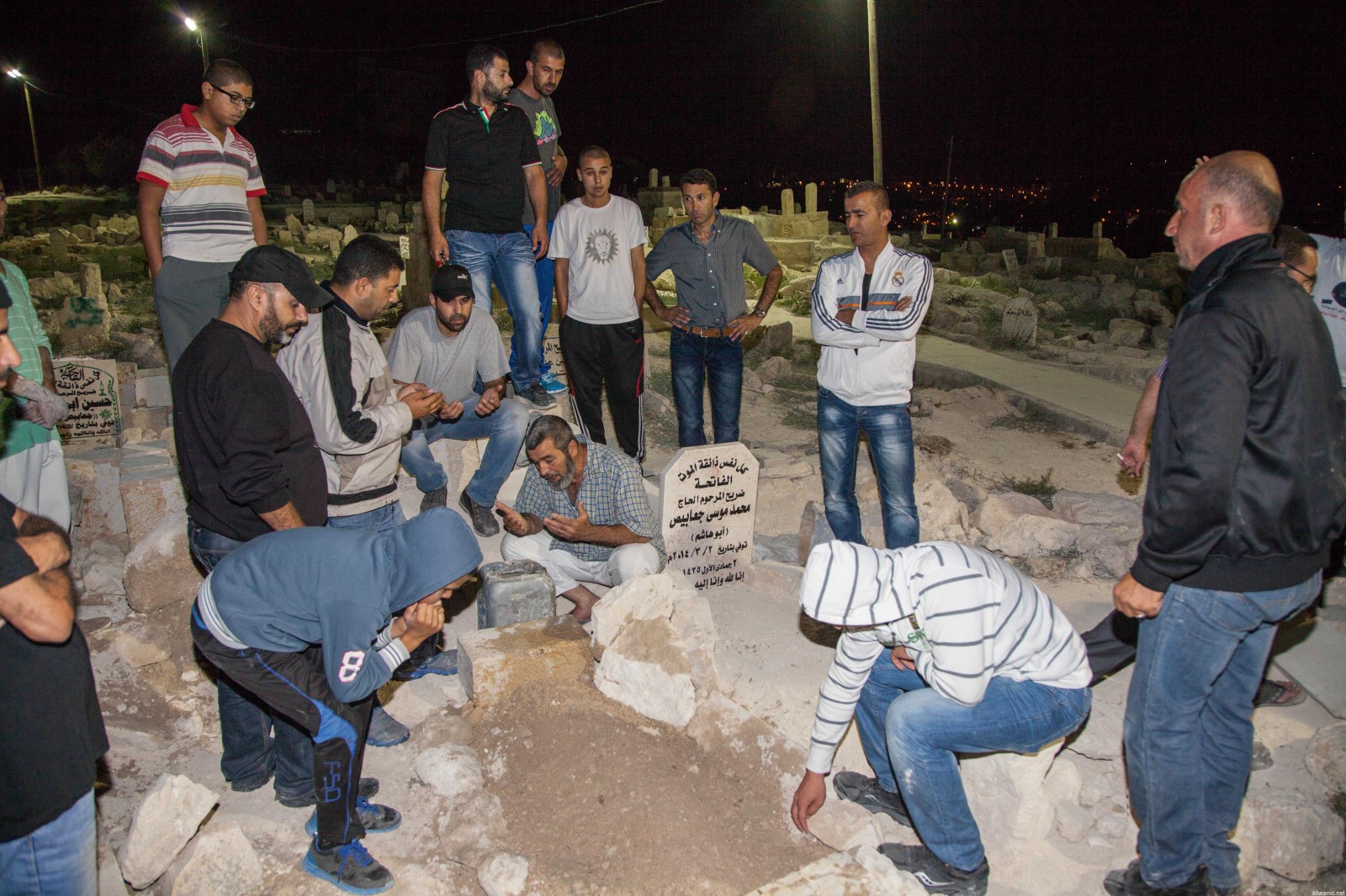 Dozens of locals from Jabal Al-Mukabber participated in the funeral of the 21-year old Martyr Mohammad Ja’abees after midnight Wednesday in the cemetery of Jabal Al-Mukabber with the presence of Israeli police. The Israeli forces handed the body of Ja’abees to his family in the neighborhood of Jabal Al-Mukabber south of Jerusalem after detaining it for three days and the Israeli authorities imposed conditions on the family to carry out the funeral with the presence of first degree relatives only and to bury his body immediately after receiving the body and away from the media and avoid the traditions of a Martyr’s funeral. Mohammad Ja’abees had passed away after his bulldozer collided with an Israeli bus on Monday afternoon in the neighborhood of Sheikh Jarrah near “Street number 1” which led to the death of one Israeli Rabbi and the injury of six others; fire was opened towards the Martyr after the incident. The family of Ja’abees declined the Israeli claims that their son deliberately collided with the bus. Abu Amjad, Mohammad’s uncle, said: “there are videos recorded by witnesses which show that Mohammad was shot by settlers and then tried to escape from the area, but they continued to shoot at him and that’s when he collided with the bus. Then, random fire was opened at him which led to his immediate death.” He added: “the Israeli claims are well-known after killing any Palestinian. We refuse those claims since Mohammad was working and he was assaulted before colliding with the bus.”