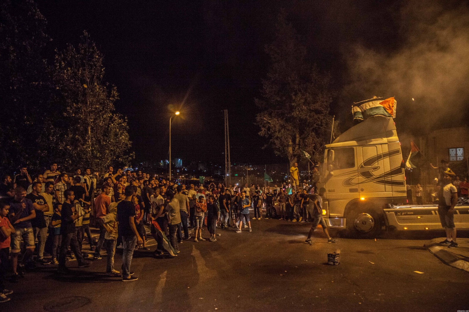 وعلم مركز معلومات وادي حلوة أن تظاهرة خرجت من قاع الحارة ببلدة الطور، ابتهاجا بنصر المقاومة، وخلال هتافاتهم للغزة قامت القوات باطلاق القنابل والاعيرة المطاطية، فتحولت المظاهرة الى مواجهات مع القوات.