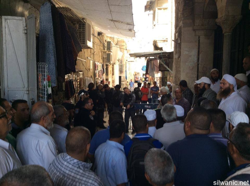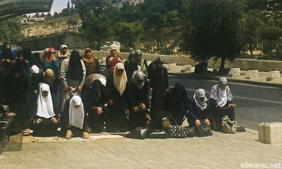 Dozens of women were forced on Tuesday to perform the Noon Prayer at the outside gates of Al-Aqsa Mosque after they were denied entrance by the Israeli police in order to secure the settlers’ break-ins. Women were prevented from entering Al-Aqsa since 7 a.m. as the Israeli police established iron barriers at Al-Aqsa Gates for the third consecutive day which is the same technique used during the month of Ramadan. The police chased the women that were gathered at Al-Aqsa Gates and pushed them away. Dozens of men carried out a sit-in near Al-Majles Gate on Tuesday to condemn the procedures of preventing women from entering Al-Aqsa.