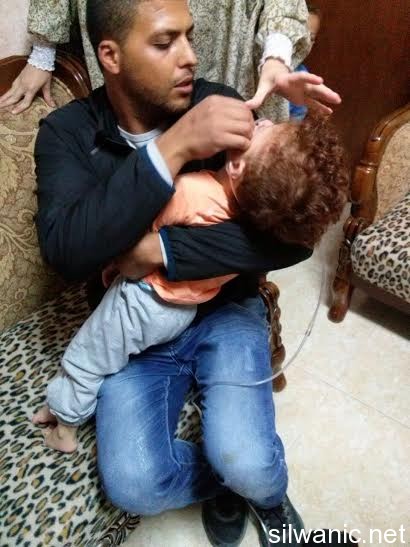 وأصيب الطفل سعيد احمد صبري ويبلغ من العمر (عام ونصف)، بحالة اختناق شديدة بسبب المياه العادمة وقدمت له طواقم الاسعاف العلاج، كما اصيبت ام محمد القاق 37 عاما بعيار مطاطي بقدمها.