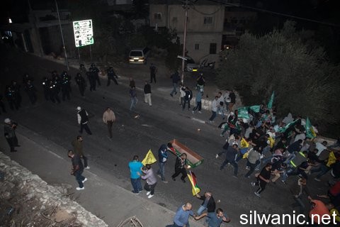 The Israeli forces suppressed on Sunday night the symbolic funeral for the Martyr Shallodi using live ammunition, rubber bullets, and tear gas and sound grenades with the help of the Calvary unit. According to the initial information monitored by Wadi Hilweh Information Center, the Israeli forces suppressed the funeral only few minutes after it was initiated and they attacked the citizens used unjustified force. Three young men were injured during the clashes where one was injured in his genital organs and another with shrapnel of a sound grenade in his face; note that the forces arrested one young man and severely beat him. The Center was informed that 7 young men were injured until p.m. on Sunday including one man who suffered multiple fractures in his leg after being shot with a rubber bullet from a very close distance.