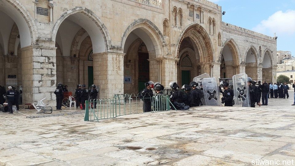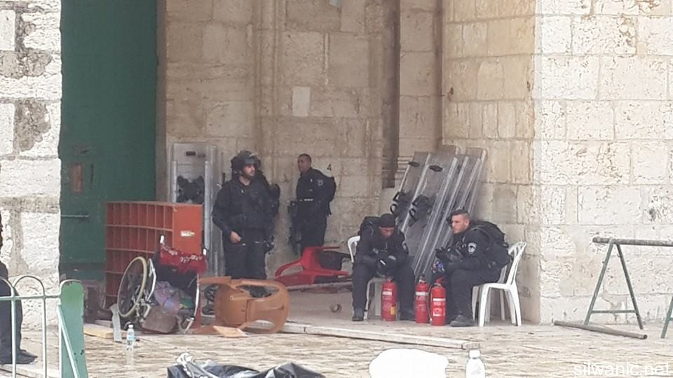 The forces closed most of Al-Aqsa Gates except for Hutta, Al-Majles and Al-Silsileh Gates and prevented all Muslims from entering including the Al-Aqsa students. They also prevented Al-Awqaf employees from entering and then allowed them after making some calls.