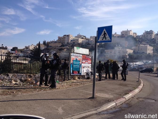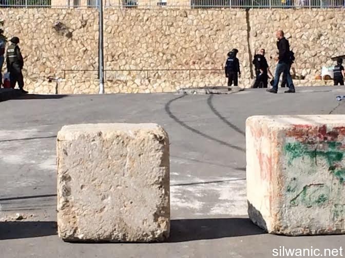 The Israeli Special Forces raided the houses of the Martyrs Ghassan and Odai Abu Al-Jamal and assaulted the residents and fired grenades and rubber bullets and then searched both houses and damaged their contents. Wadi Hilweh Information Center was informed that the Israeli forces arrested Ghassan’s mother and wife, Odai’s mother, Murad, Mouawya, Mutaz, Munther, Jamal, Daoud, Odai, Ra’fat and Mohammad Abu Al-Jamal. The center was also informed that scattered clashes broke out in Jabal Al-Mukabber especially around the Martyrs’ houses. The forces were also targeting the residential houses and the residents and they withdrew from the streets of the village at 1:15 p.m. During the clashes, 22 people were injured including 17 suffocation cases and 5 with rubber bullets including one paramedic. Treatment was provided for the injuries which were described as minor to moderate. The forces also closed the entrance of Jabal Al-Mukabber with cement blocks after it was closed by the Israeli police since the morning. The Martyr Ghassan has three children where the oldest is six and the youngest is three years old.