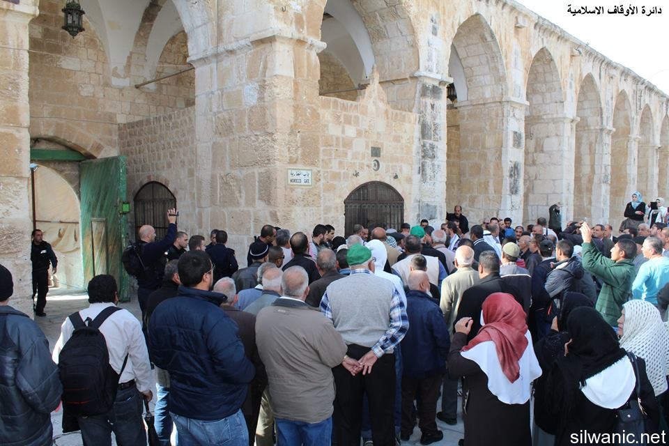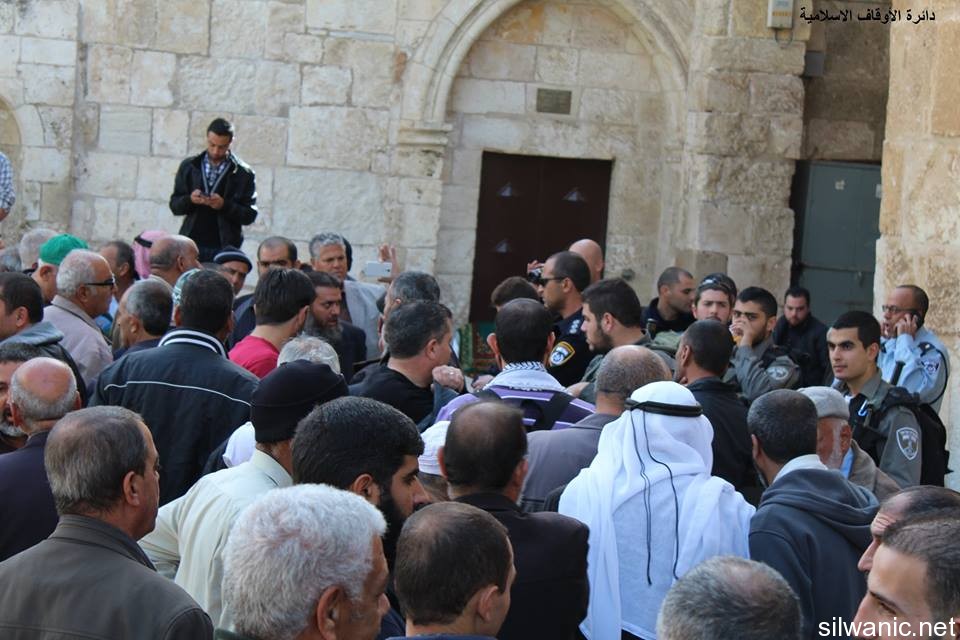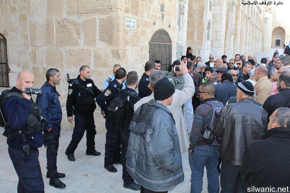 The Israeli police arrested on Wednesday Hajj Abu Wael from inside the courtyards of Al-Aqsa Mosque. Witnesses said that Abu Wael was near Al-Buraq Mosque with a group of worshippers and one police officer who was stationed at Dung Gate requested him to approach him and then assaulted and arrested him. Dozens of Marabouts gathered and chanted “God is Great” to condemn the arrest of Hajj Abu Wael and Special Forces were deployed in the courtyard of Dung Gate. The forces arrested three young men from the village of Esawyeh, Um Tuba and Jabal Al-Mukabber on Wednesday early morning. On the other hand, the Israeli forces raided on Wednesday night the surrounding of Abu Al-Jamal mourning tent and went on top of the roofs near the tent, and then broke into the house of the late lawyer Mohammad Mousa Eweisat and searched the house and damaged its contents.