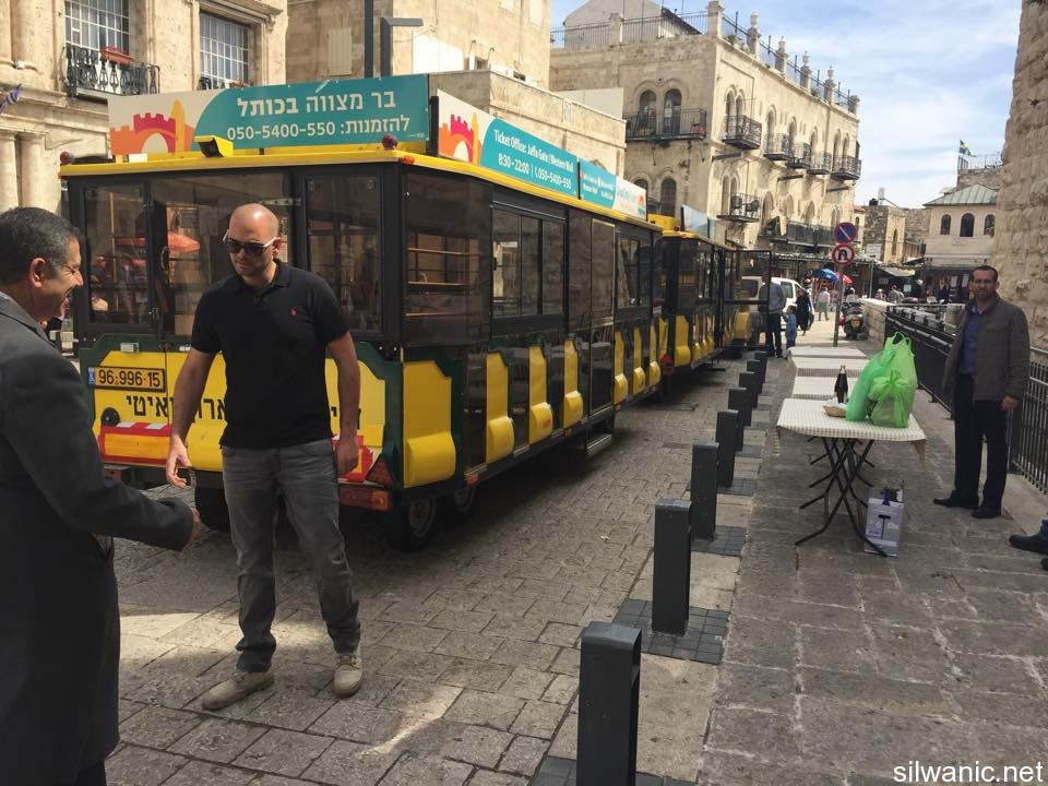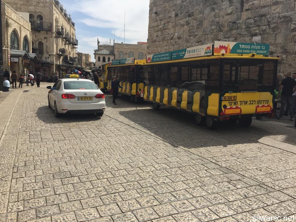 In coordination with an Israeli busses and train company, the Ministry of Tourism and the occupation municipality announced on Thursday the project of “Tourist Train” which will tour inside the Old City of Jerusalem adjacent to its southern wall. According to the announcement, the train will travel for 30 minutes in between Jaffa Gate west of the Old City through the Armenian Quarter and the occupied Jewish Quarter and then to the Wailing Wall area "the ruins of the Moroccan Quarter". This project launched with experimental tours at the beginning of the Jewish holiday (Passover) last Friday and Saturday. The tours start at 8 a.m. until 10 p.m. in which there will two tours every hour; note that that capacity of each tour is up to 56 passengers. The “judaization train project” includes audio guidance in seven different languages explaining the Israelis’ claims about religious and historical Jewish sites.