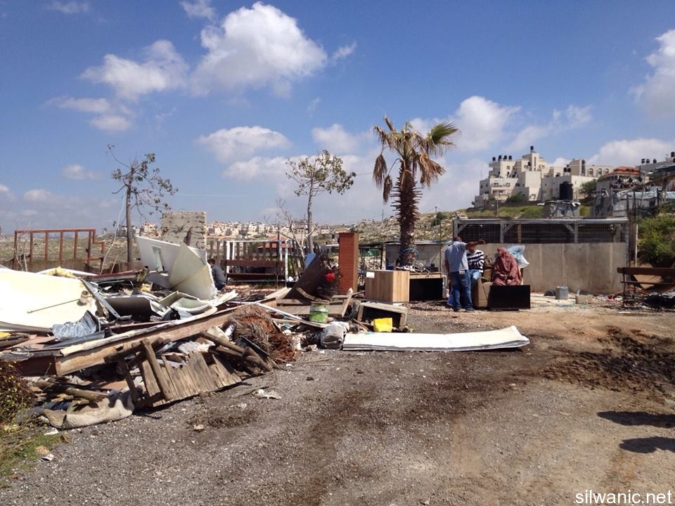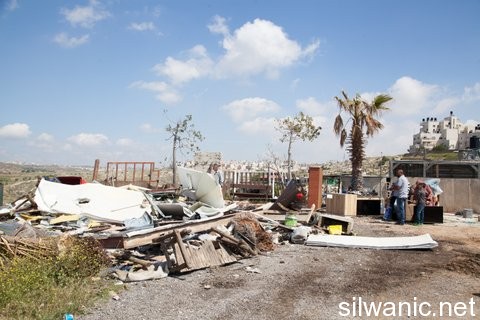 The occupation municipality’s bulldozers demolished on Tuesday morning a residential caravan in the neighborhood of Al-Ashqarya in Beit Hanina north of Jerusalem. Wadi Hilweh Information Center was informed that the 40-square meters residential caravan is owned by Mohammad Shweiki where his workers reside. Shweiki explained that the caravan has been sitting there for the past two years and the demolition came without prior notice. The forces raided the caravan and removed part of the furniture and then demolished it. Shweiki also pointed out that the occupation municipality demolished his house twice before. The first demolition was 10 years ago while the second was 8 years; note that he continuously tried to obtain a building permit to build on his land but the municipality claims that the land is classified as “green” where building is prohibited.