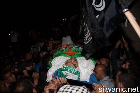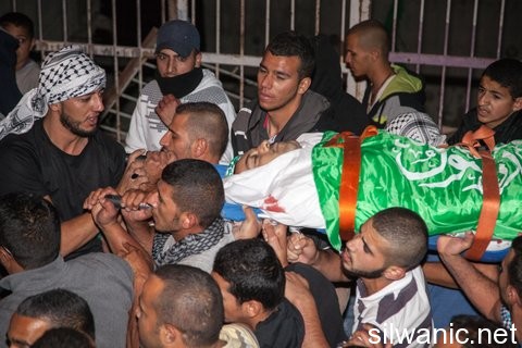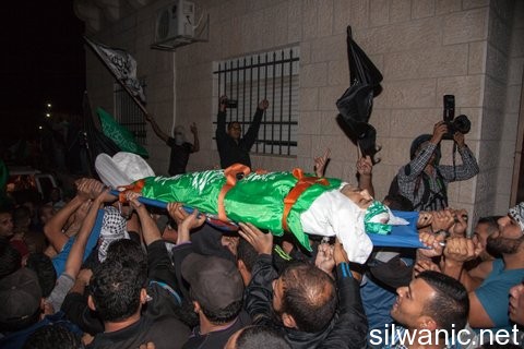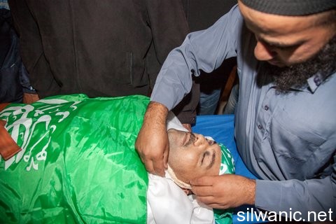 After the family received the Martyr’s body from Jabal Al-Mukabber police station, he was transferred in the Palestinian ambulance to his house where his family had the chance to take a final look at him and then to the village’s mosque where they performed a prayer to his soul and onto the cemetery.