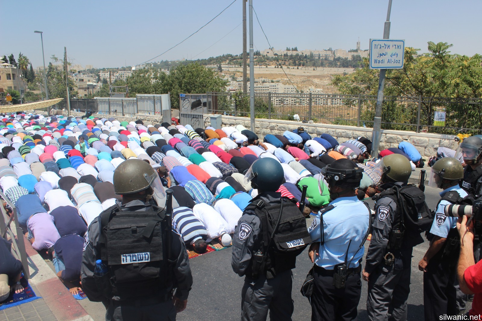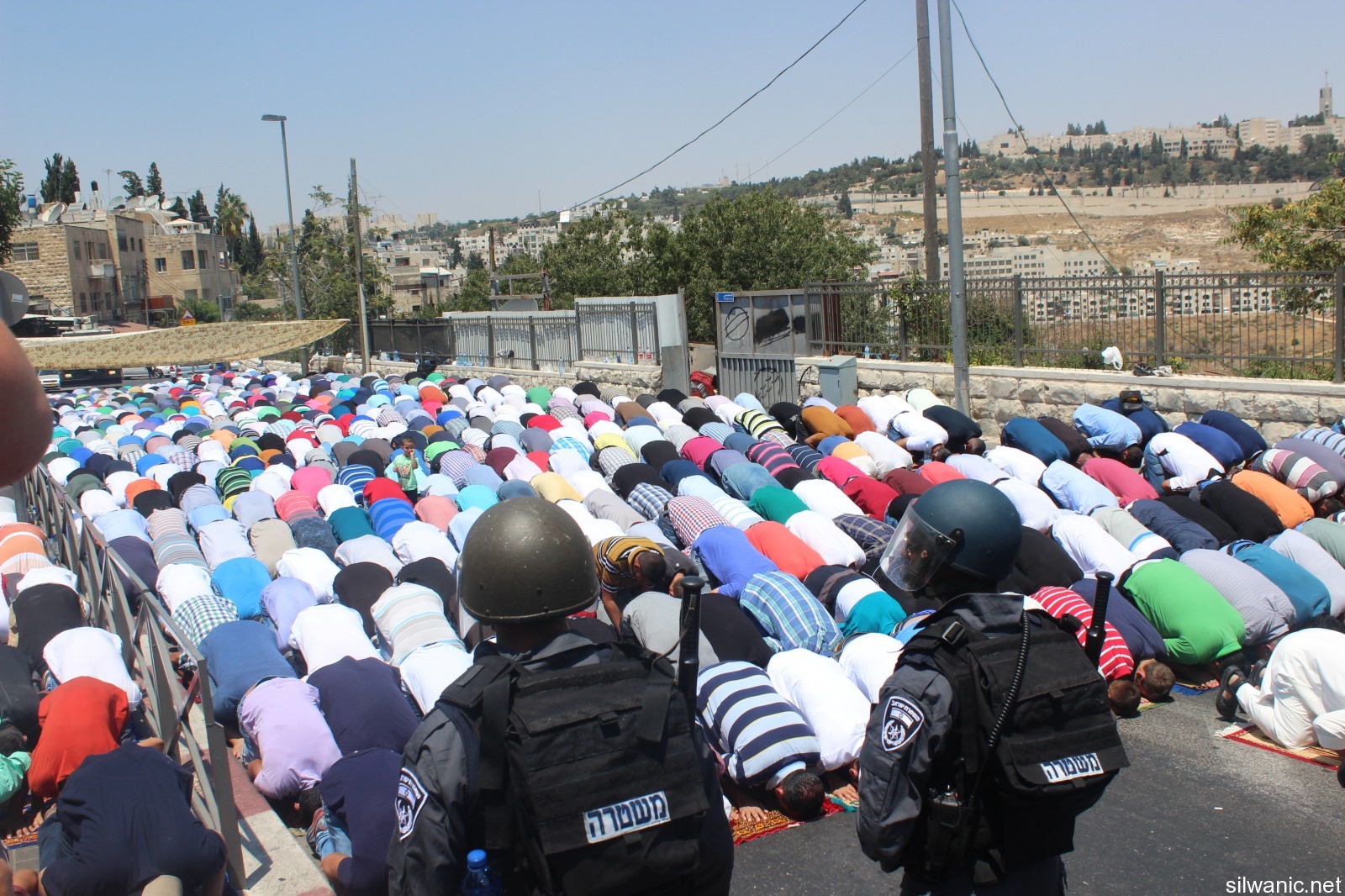 وأدى المئات من الشبان والفتية صلاة الجمعة في الشوارع والطرقات، حيث اقيمت الصلوات في مناطق (رأس العامود وباب العامود وواد الجوز وشارع صلاح الدين وباب المغاربة) وعلى أبواب الأقصى، حيث اصر من منع من الوصول الى المسجد أن يؤدي الصلاة عند آخر نقطة يمنع فيها.