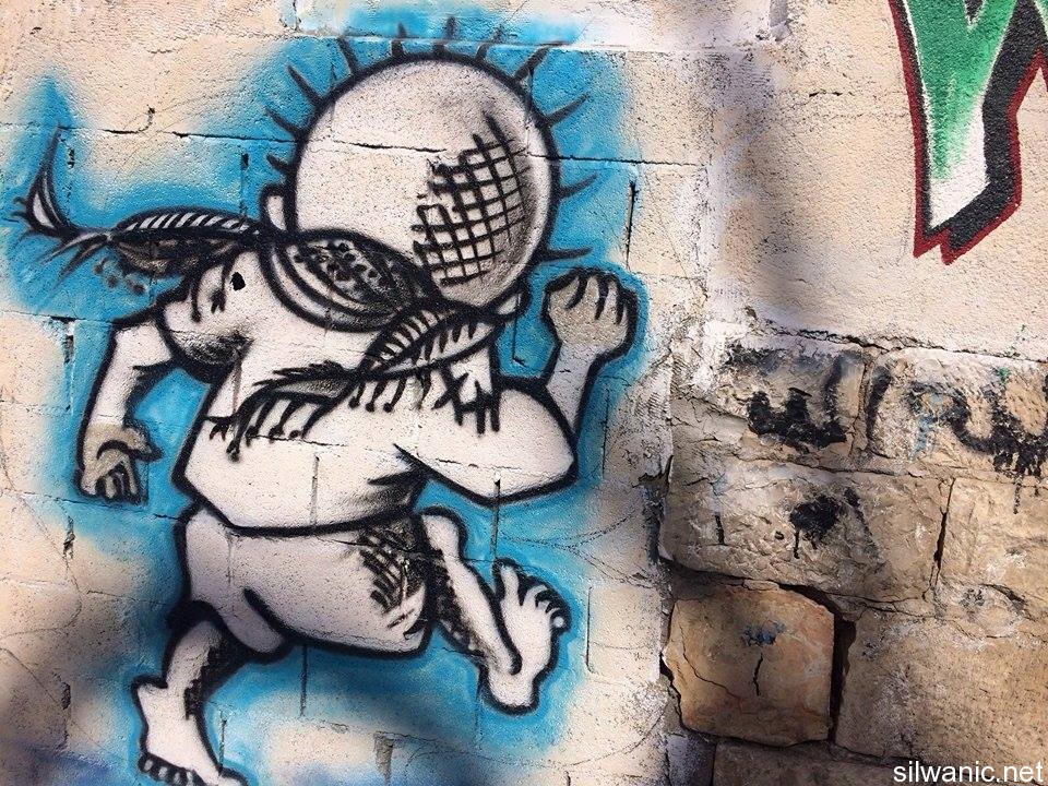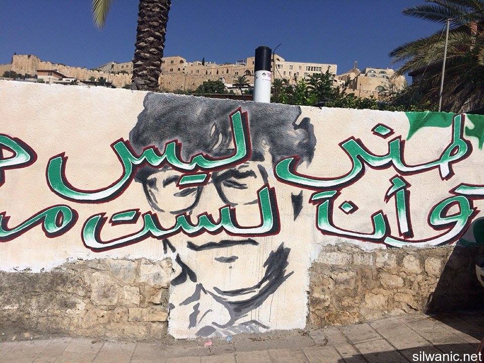 Palestinian flags and “I love you Silwan” slogans covered several walls in addition to the “Right to return” and Handala. Another picture was drawn for the late Palestinian Poet Mahmoud Darwish and some of his slogans insisting to hold-on to the land and preserve the Arab identity of the city were also written on the walls.