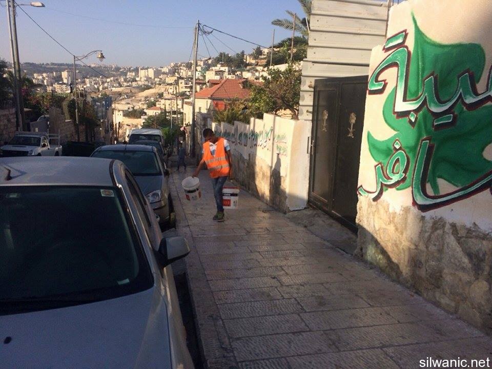 The center explained that the municipality's contractor along with a group of workers raided the neighborhood of Wadi Hilweh and had painting tools with them and attempted to remove the paintings drawn on some walls in the neighborhood and claimed that the paintings disturbed the settlers.