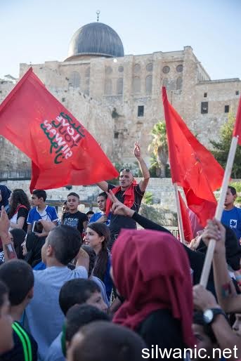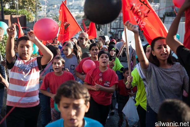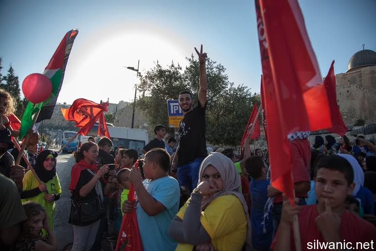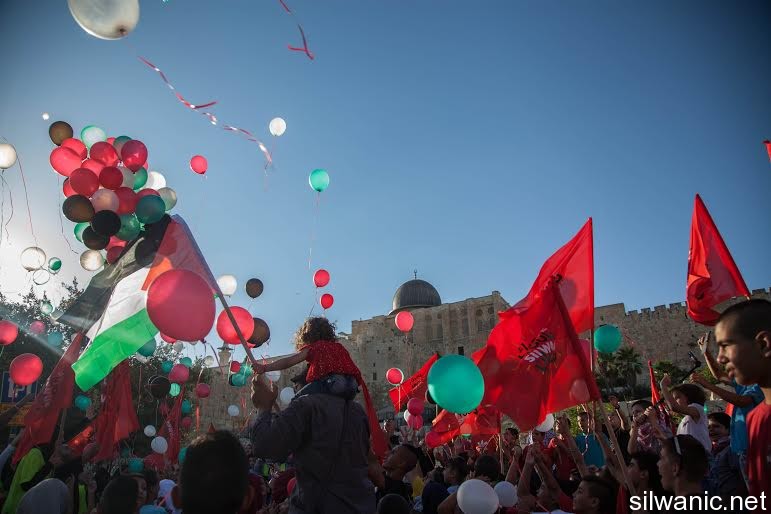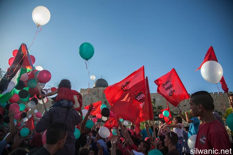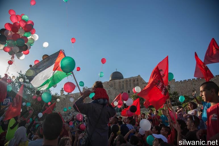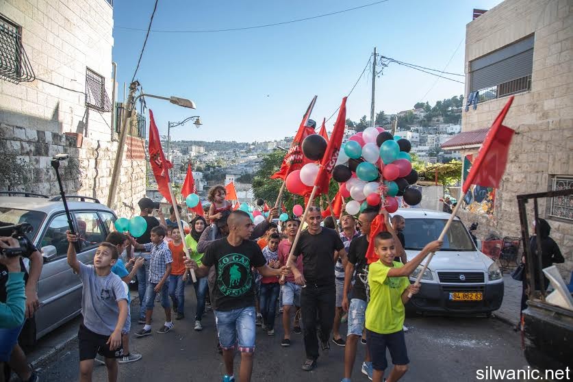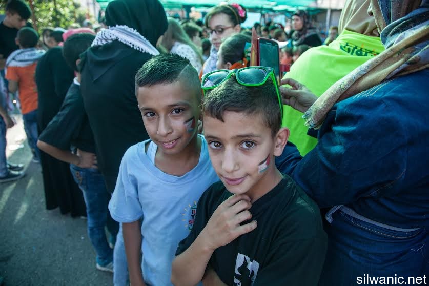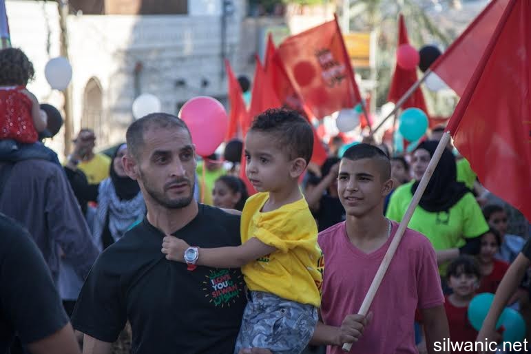 The march initiated from Wadi Hilweh playground and walked in the streets of the neighbourhood reaching the area of Umayyad palaces adjacent to the southern wall of Al-Aqsa Mosque. The participants launched balloons with the Palestinian flag's colors and chanted slogans for Jerusalem, Silwan and Al-Aqsa.