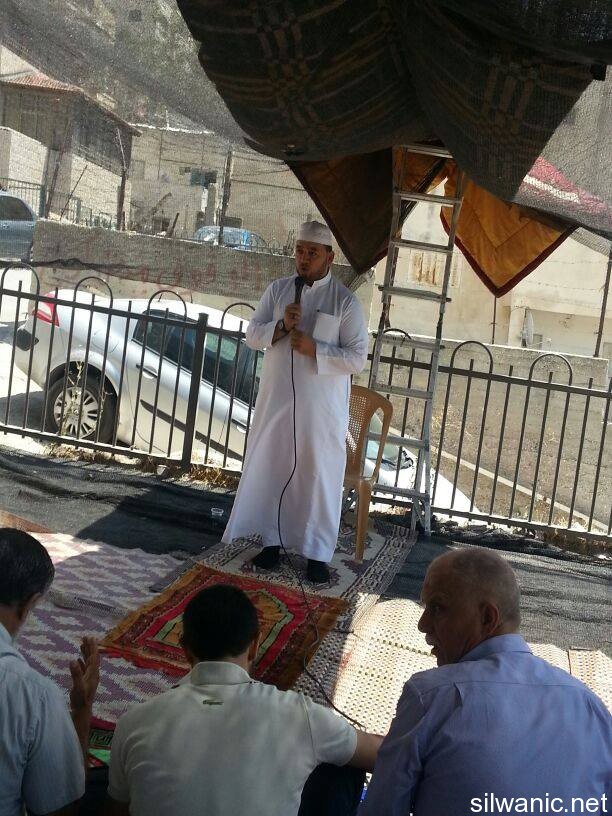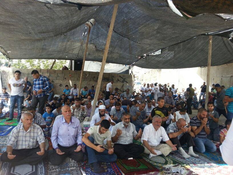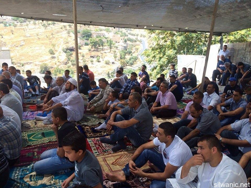 Dozens of the locals of Silwan performed the Friday Noon Prayer at the sit-in tent established in the neighborhood of Batn Al-Hawa in Silwan in response to a call made by the neighborhood’s committee to refuse the policies and attempts of the settlement organization Ateret Cohanim which aims at seizing and taking over house in Silwan.